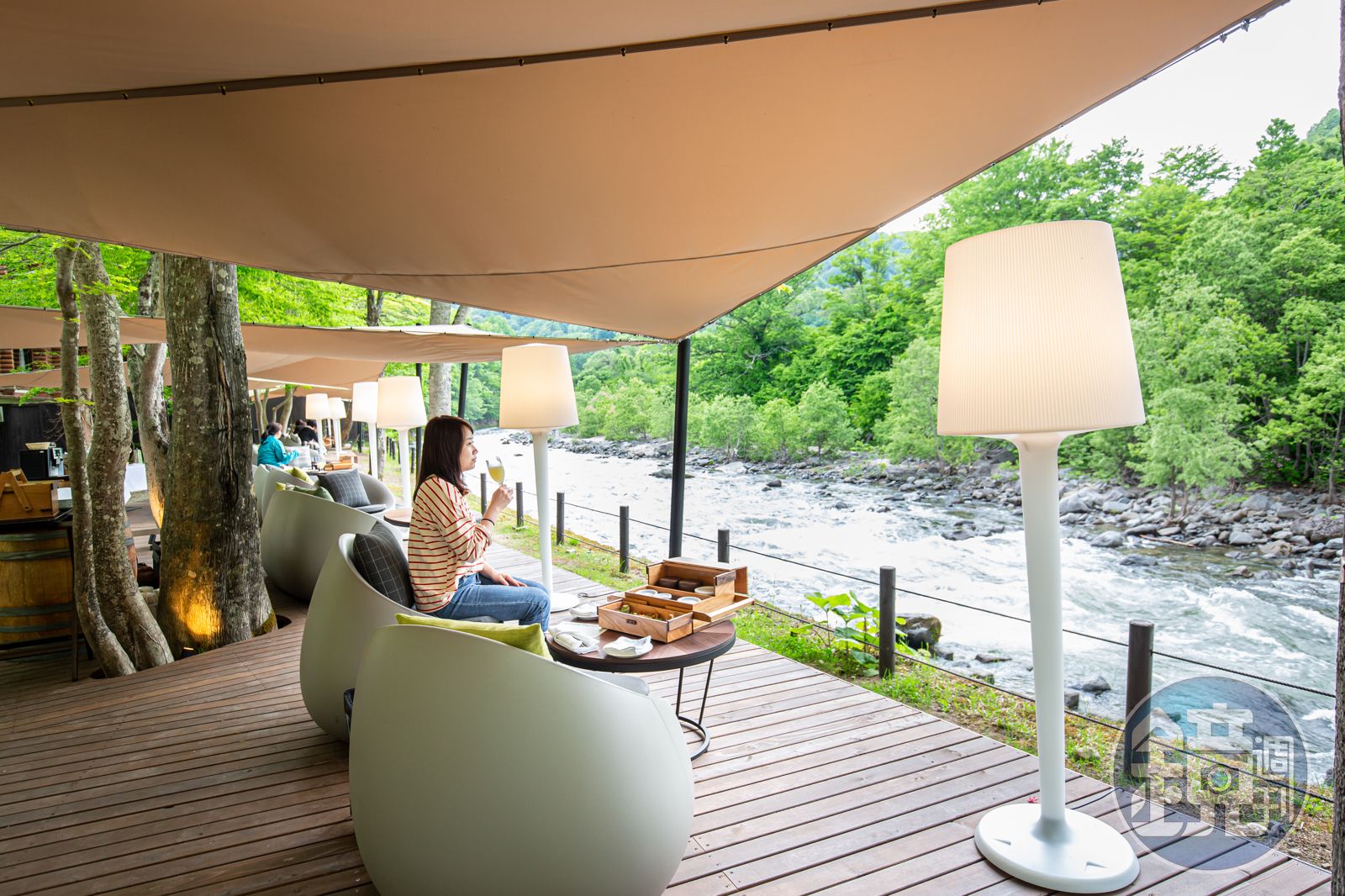 奧入瀨溪流有讓人上癮的魔力。在溫度稍低的清晨,我一早來體驗「溪流露台早餐」,從露台往外望,水流因高低差傾瀉而下,視覺張力令人百看不厭,我窩進鵝卵石造型椅裡,醉心於美景,此時笑容可掬的服務生,拎來木質野餐盒,裝滿菠菜培根鹹派、蔬果沙拉、生火腿可頌、義大利蔬菜濃湯、堅果優格,以調味恰到好處的西式早餐佐景,也消融了早起的疲憊。