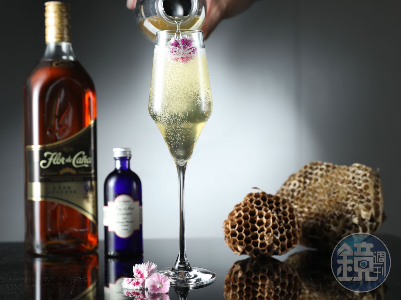 「氣泡能讓香氣分子更容易釋放,但像蜂蜜或果汁這類材料,會讓氣泡成核反應增加,氣體難溶於液體,所以要多打幾次。」解釋中專業術語連發,原來永霈本科讀材料工程,自稱被調酒耽誤的工程宅,但把實驗室裡的技術用來成就分子料理般的調酒,這路也算沒走偏。