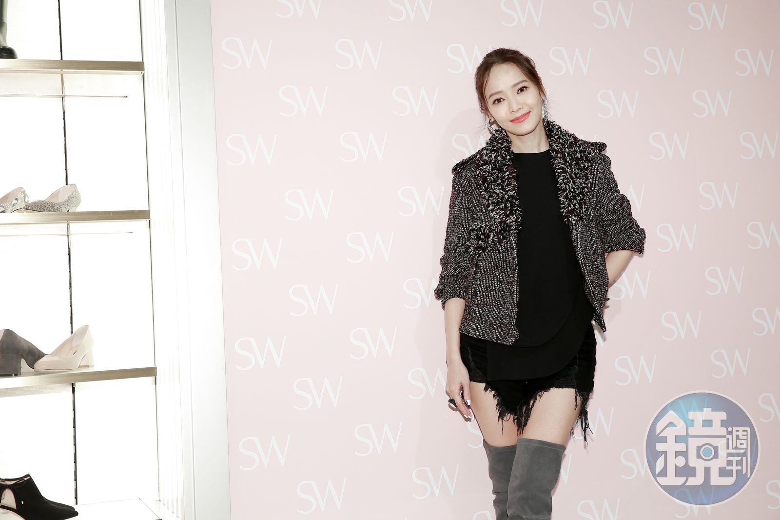 她大讚STUART WEITZMAN的長靴穿起來高挑性感,可以很貼腿,讓身材比例變超好,即便是平底款式,也有增高的效果。像她穿的粗跟款,則是非常好走,穿著逛街都沒問題。她也說自己秋冬必備的絕對就是長靴,每季至少都會買入一兩雙,參加完活動立刻就要飛紐約的她,也會把這雙灰色麂皮的長靴帶上飛機。