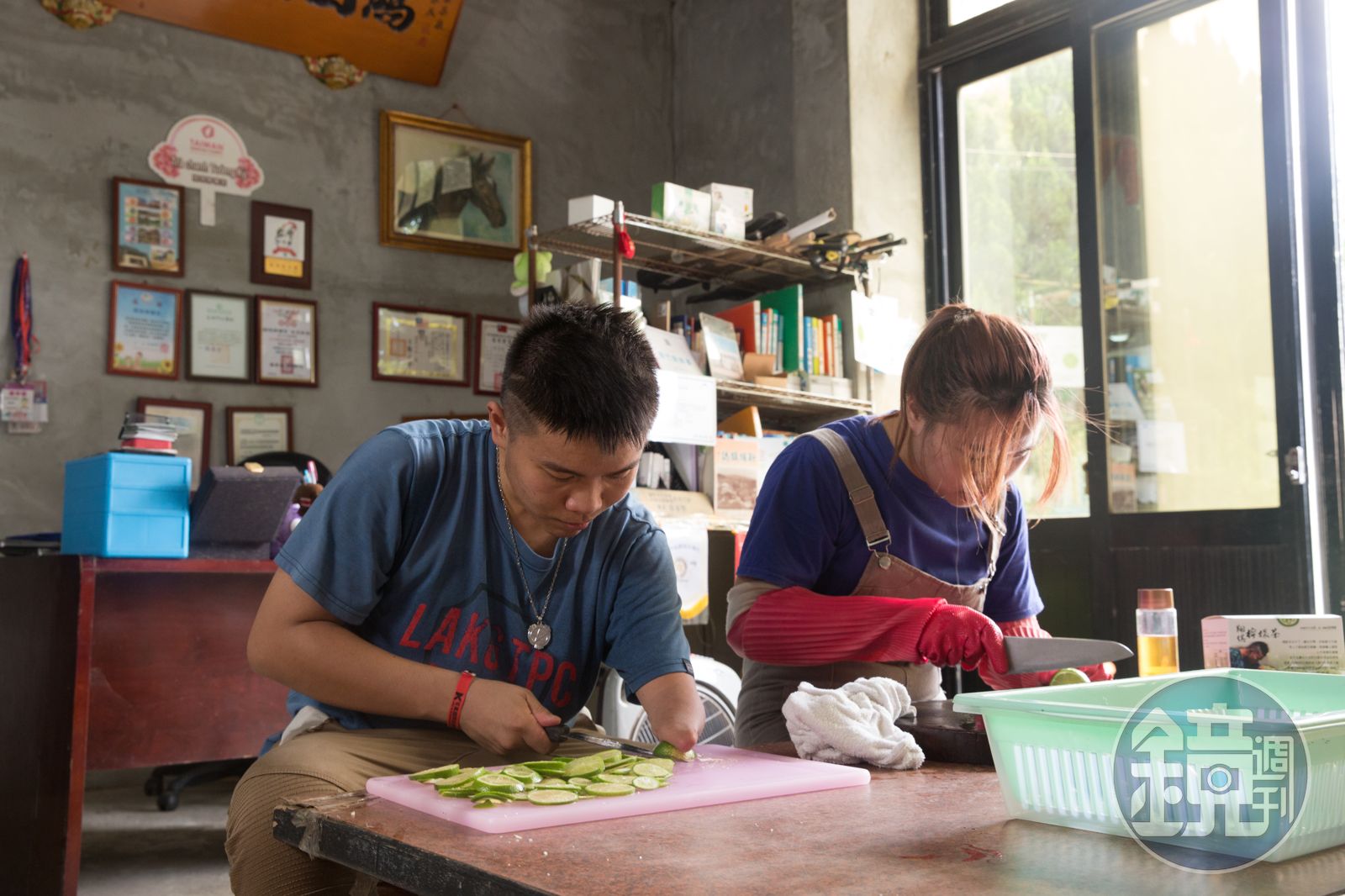 「放心啦,從來沒有切到過,有一次我跟我妹切了快2,000顆,發現刀上怎麼有血,原來是檸檬汁太刺激,把我的小雞腿弄傷了。我也曾經去看過切檸檬的機器,正想下訂時,老闆說,他小女兒的手就是操作不當,不見了。我嚇死了,我可不想再少一隻手…」詹翔欽總是能苦中作樂,他都戲稱自己的半截手臂是小雞腿。
