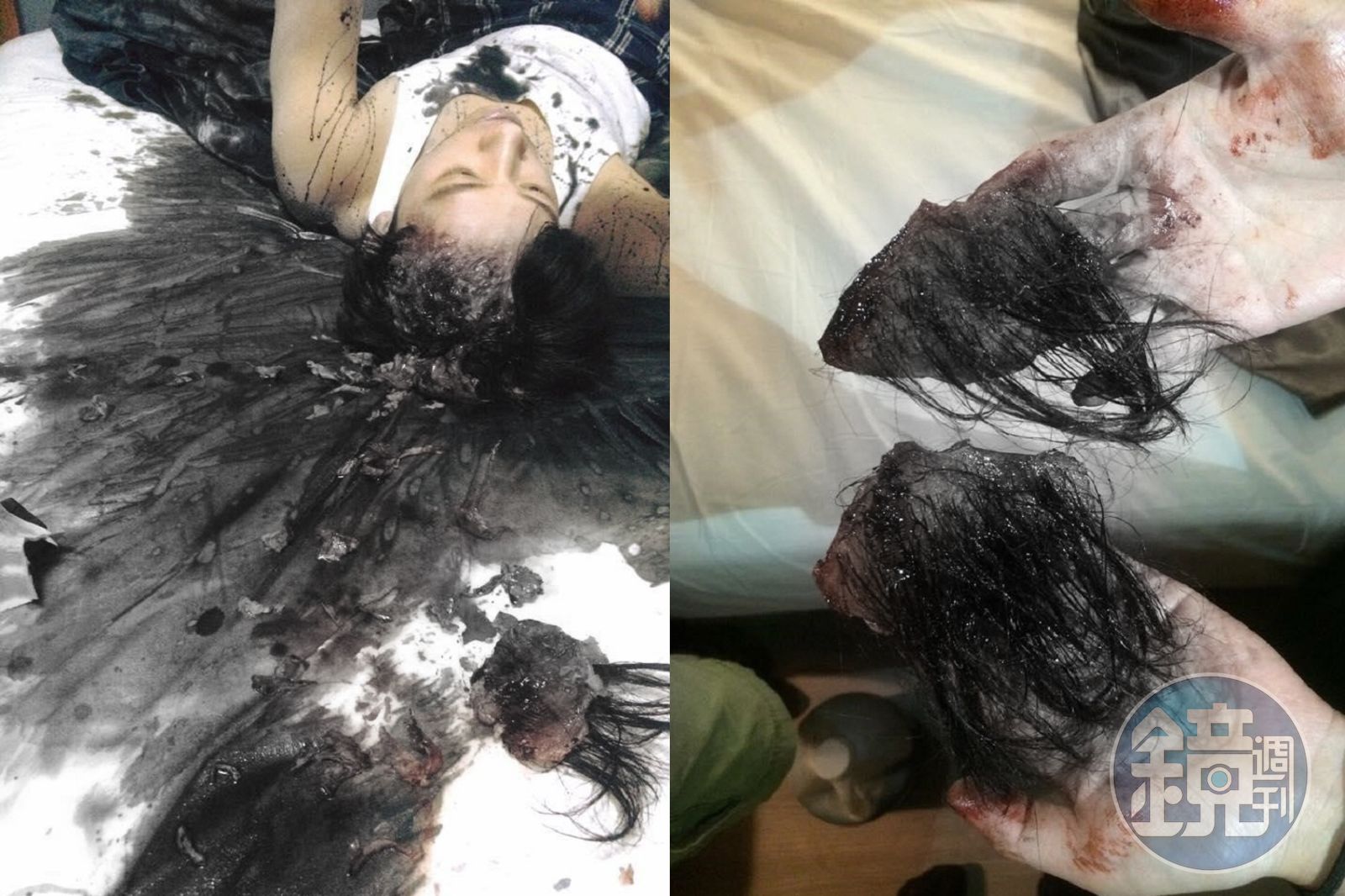 於是程薇穎興奮地準備了2片矽膠假皮、植上假髮後淋上血漿。「那個鏡頭我真的很喜歡,因為演員踩到之後,頭皮還會慢慢回復彈性,每個人都覺得超噁心,但我覺得很可愛。」