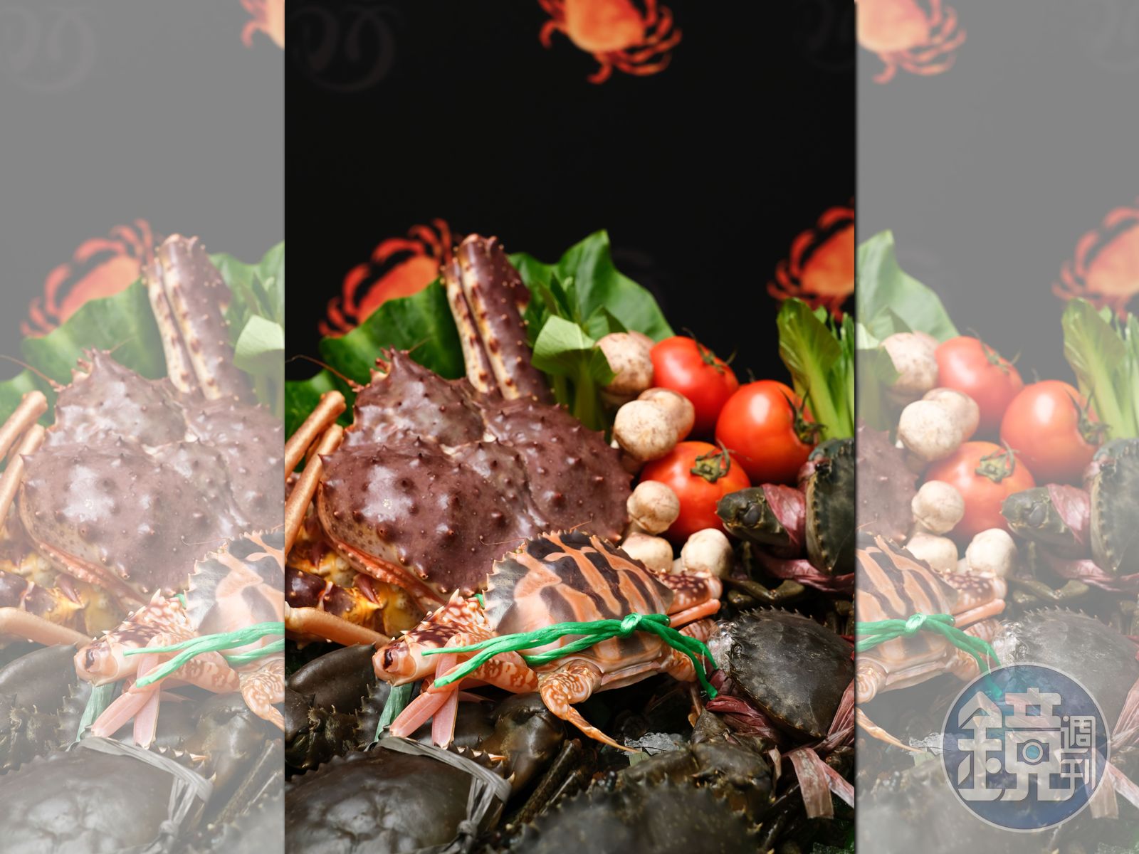 頂鮮台北店副總經理陳琮盛說,這回是第一次辦蟹為主題的餐宴,「我們台灣有很好的食材,我們希望能在101為外國觀光客建立美好的第一印象。」於是除了阿拉斯加的鱈場蟹、斯里蘭卡的沙公、日本的松葉蟹,來自萬里的花蟹、台南北門的處女蟳,都成了餐桌上的嬌客。