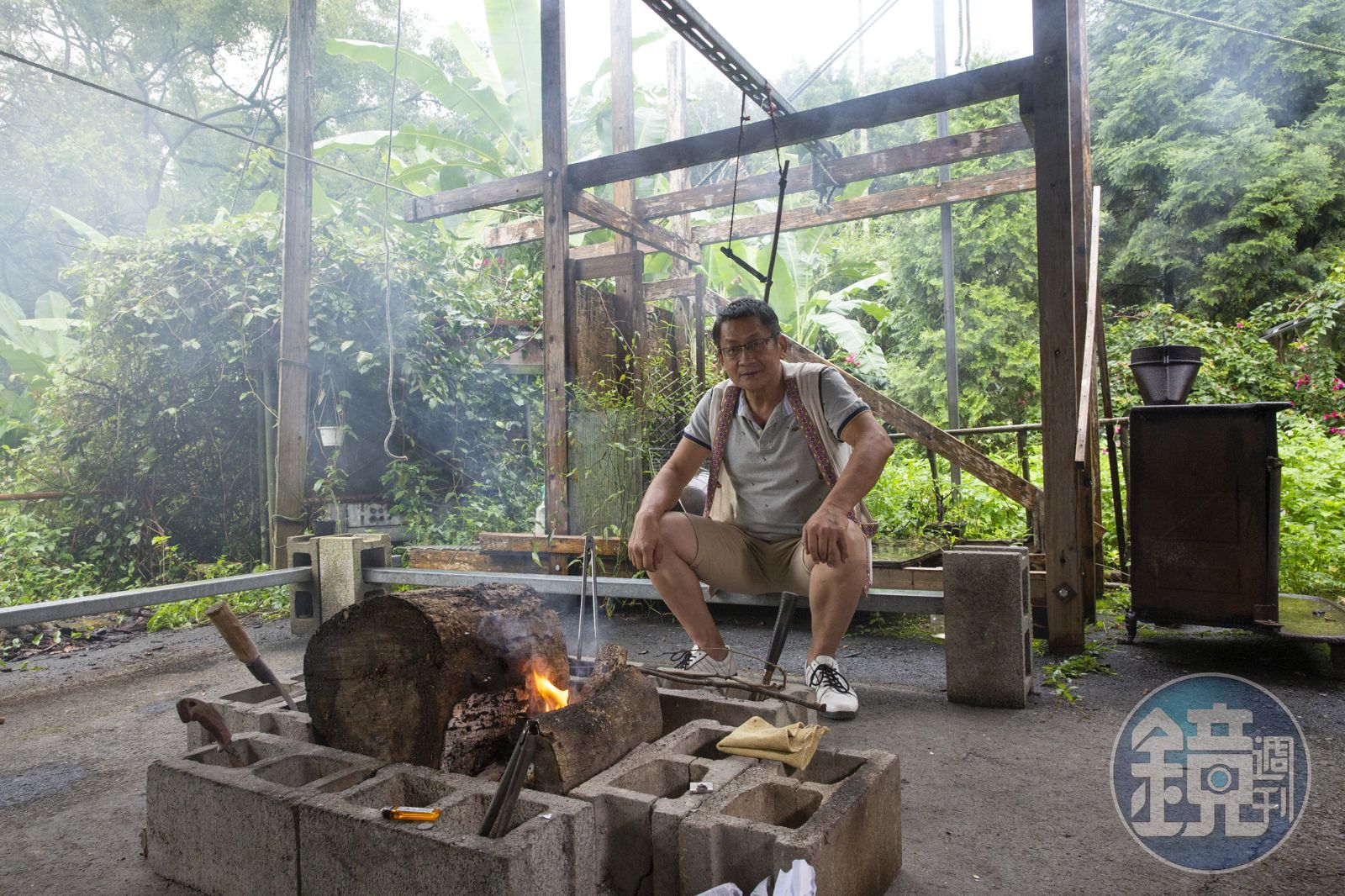 我們身旁烤著一盤營火,我問他這是什麼用意?「這是邵族的傳統,用途很多。」他解釋:「堆三個石頭就是灶,就是廚房,打到的獵物拿來煙燻一下,也可以驅蚊,傍晚就煮飯菜,以前沒有燈嘛,晚上有光線就可以走動,靠餘光上廁所,還有用煙燻建築物,可以防蟲和白蟻。只要有煙霧流動的地方,空氣就不會凝固,不會那麼死氣沉沉。」他說的是煙,也像是他自己執著救災的身影。
