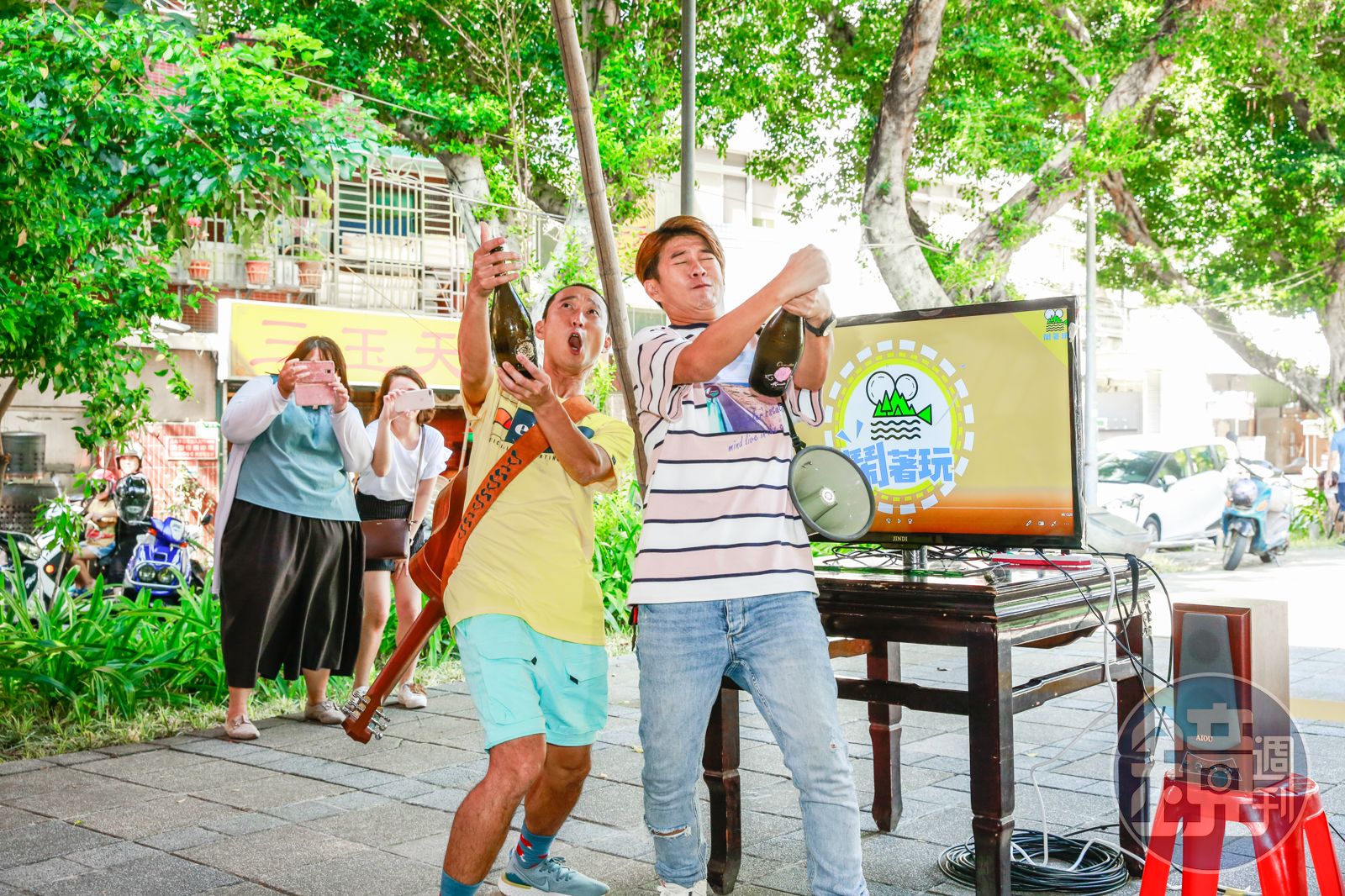 不過今天的活動獨缺阿翔,浩子與顏永烈笑言3人輪班,今天剛好輪到他們上班。2人在《食尚玩家》待了12年,如今都已是40歲的大叔,坦言現在體力大不如前。尤其浩子手上有4個節目,最近連續飛日本及澳門,已連續2個星期工作沒休息。他被顏永烈揪來主持,卻是「無酬」參與,目前節目已去了日本、馬來西亞、澳門等地,2人都很期待節目首播。