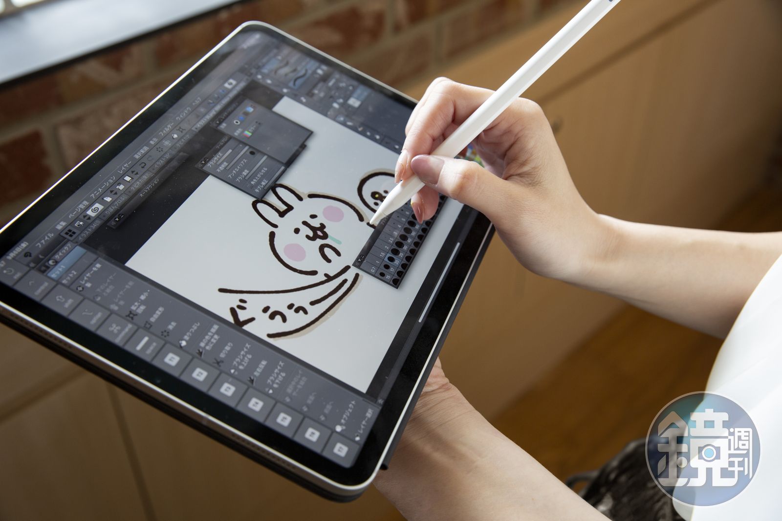 她解釋粉紅兔兔跟P助的特色,「P助比較死腦筋、傻正直,粉紅兔兔是無腦搞怪。」問她有沒有投射自己的個性在兩個角色裡,她思考許久:「我覺得還好,但應該多少有一些。」此時一旁的漫畫家友人連忙救援:「老師沒有像P助那樣笨拙,但是傻正直的部分是有的。」