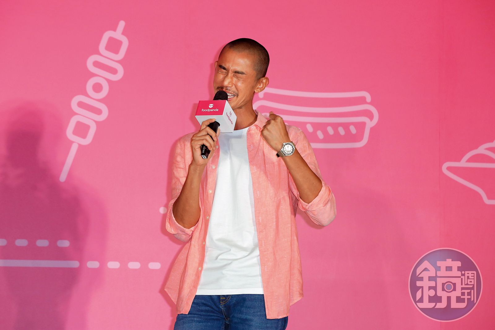 分手的舊情侶就算分處不同的時空與場合,難免心有靈犀,比如說吳慷仁出席美食外送品牌的記者會,他又黑又乾像個遊民,而且臉部表達能力也相當帶勁兒,前女友鍾瑶也不輸他,兩人甚至雙手一起握拳,行徑也是一個比一個浮誇的。
