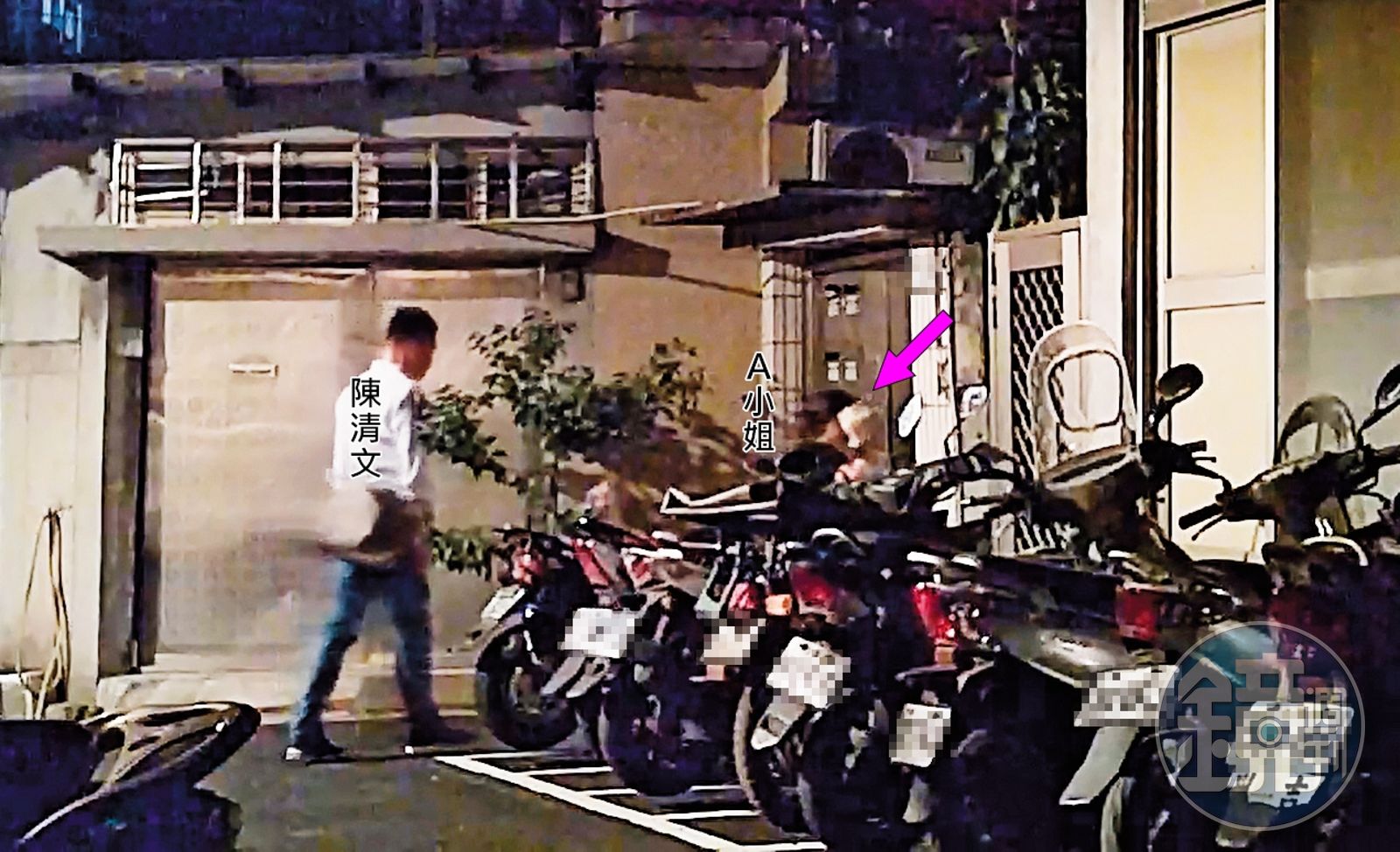 當天深夜,本刊從餐廳直接前往A小姐住處附近守候,果然在11點半左右,看到陳清文與A小姐一起回家,之後陳未再離開。一直到隔天清晨6點半,陳才打開公寓的大門,準備返回總統府上班。受過專業維安訓練、個性小心謹慎的他,還不時東張西望,確定附近沒有可疑的人車之後,才邁步離開。2個小時後, A小姐也從住處離開,準備上班。