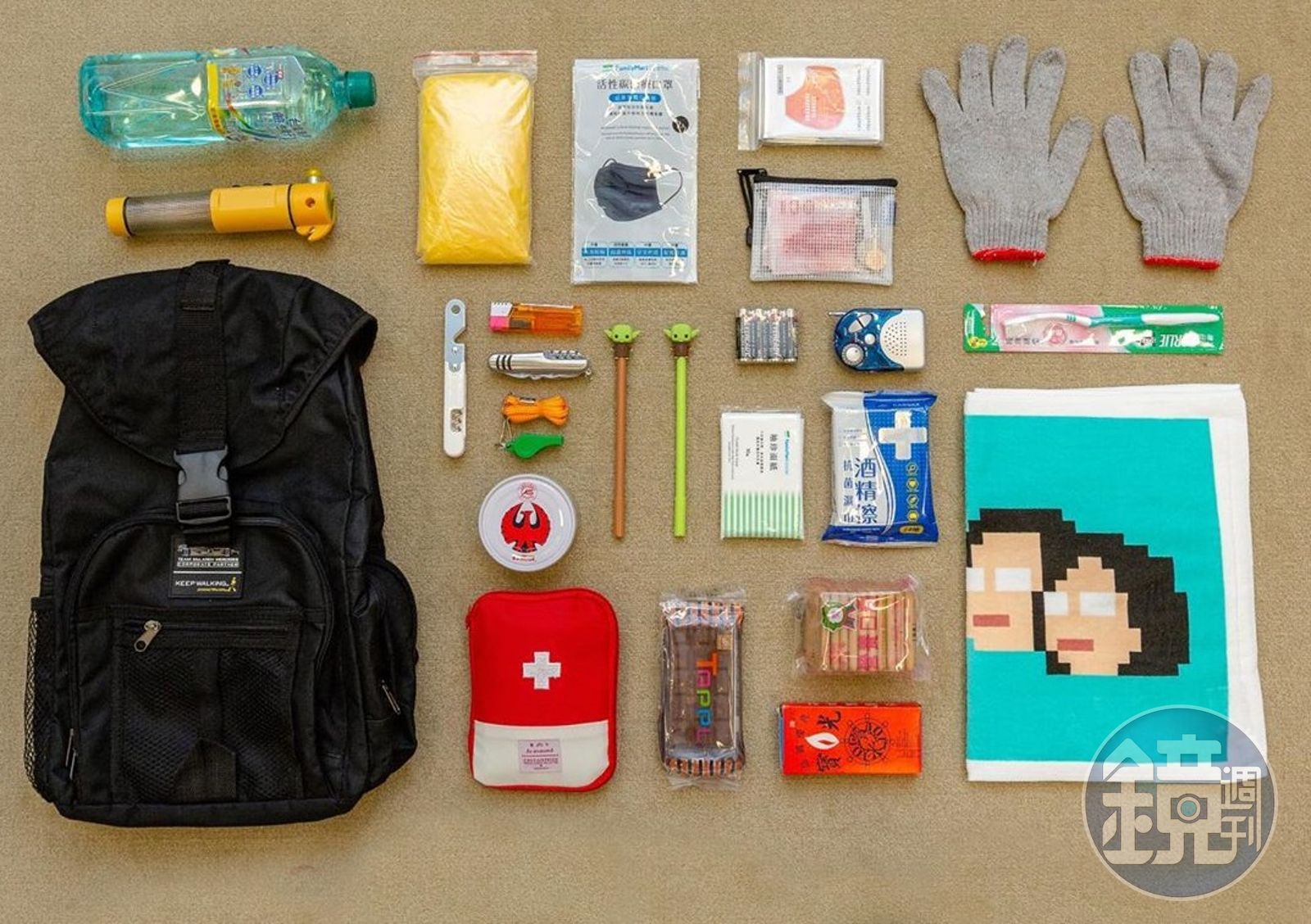 蔡英文提醒民眾準備「緊急避難包」有3步:一、找一個大小適宜的背包;二、放進避難必需品(乾糧、手電筒、急救用品以及隨身貴重物品等等);三、每半年檢查更新一次。 蔡英文IG貼出的「緊急避難包」照片,網友發現超多亮點,紛紛留言「大波露~」「那兩支是尤達筆嗎?」「請問總統毛巾哪裡買的到呢?」「想直接買整組」「總統怎麼沒帶想想、阿財的罐罐~」「台灣在地震帶要常保戒心👍」「罐頭跟乾糧好熟悉,很喜歡小英總統的親民感👍」「乾糧一包怎麼夠😂😂(捏肚)」。