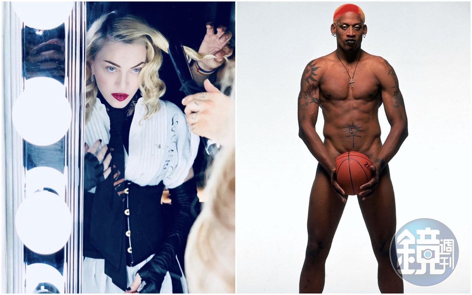 NBA前球星「籃板王」羅德曼(Dennis Rodman,右)接受電台節目,大爆瑪丹娜(左)當年如讓她懷孕可得2,000萬美元(約台幣6億元)酬勞。(翻攝自瑪丹娜IG/羅德曼IG)發布時間:2019.09.22 11:59 臺北時間