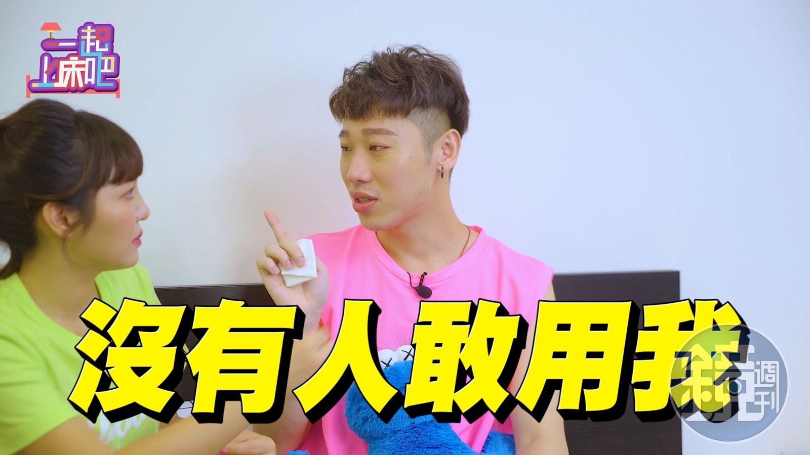 床上時光總是最容易令人卸下心房,在夜襲與狼人殺節目後知名度大開的小賴,回首一路走來的星路不禁潸然落淚。文化大學戲劇系畢業的他,出道前希望以蔡依林為目標發展,但新手菜鳥儘管再搏命,2個月只有3千的收入讓他不得不低頭。