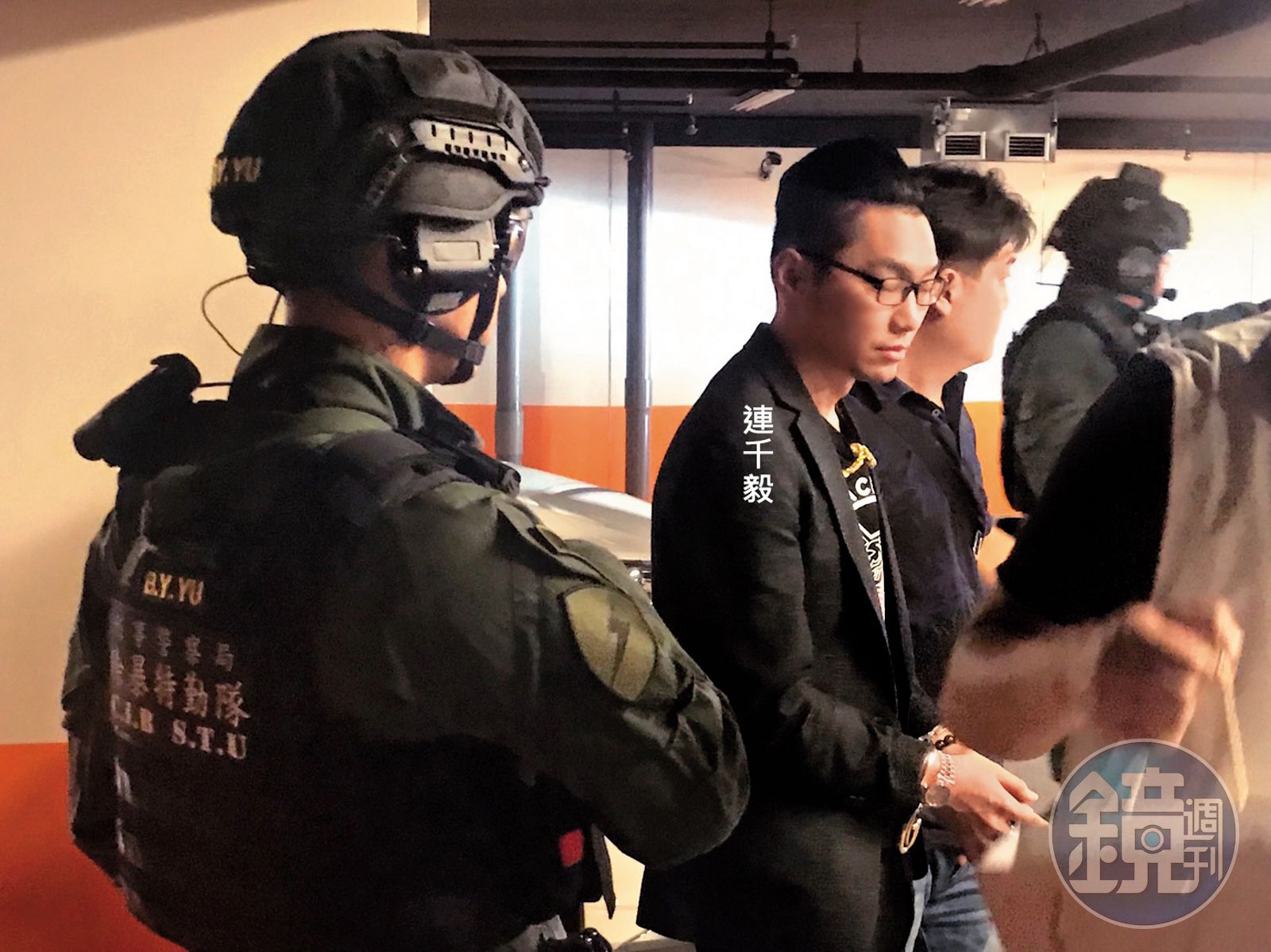 警方埋伏在新北市中和一棟大樓停車場,待連千毅(紅圈處)取車之際將他壓制。(翻攝畫面)還原衝突經過,最早是因為一名女子於9月15日在臉書發表貼文,聲稱被連千毅恐嚇,連的小弟發現後要求刪文,但鄭又仁恰巧「路過」聲援,雙方人馬隔空交火,最後甚至搬出天道盟太陽會及在地角頭大哥的名號,進而引發轟動全國的直播主之亂。