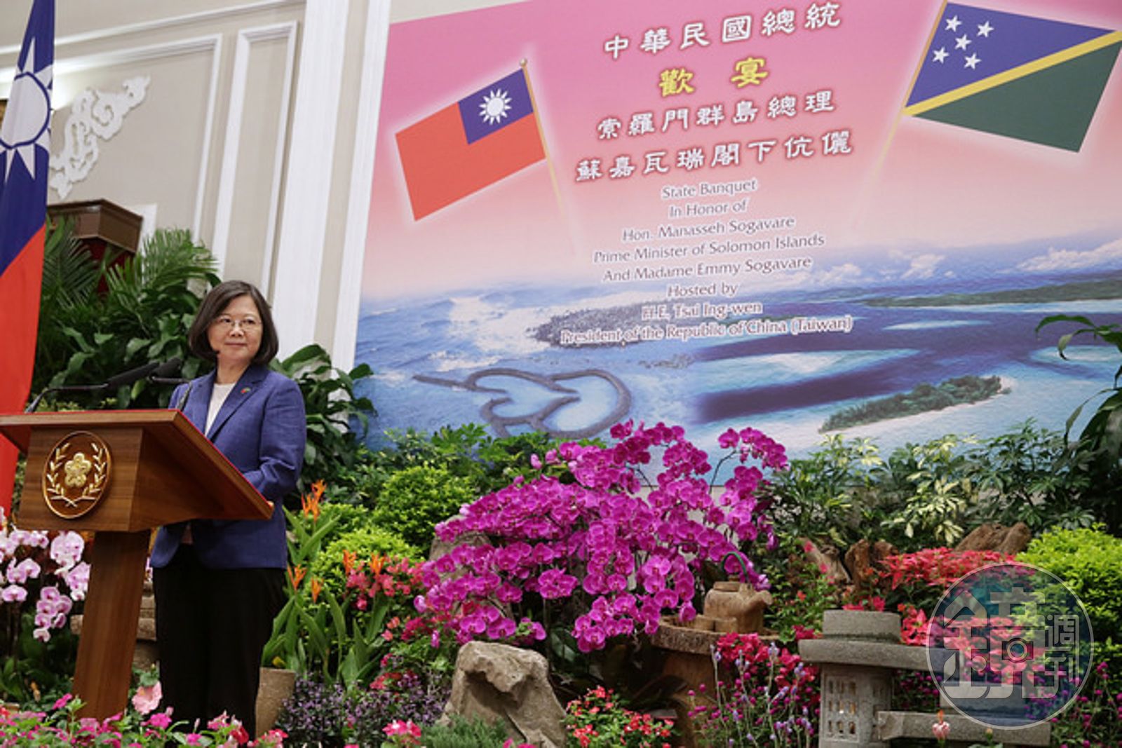 索羅門群島16日與我國斷交,結束36年邦交關係轉而向和中國建交。圖為2017年9月蔡英文總統設國宴,款待索羅門群島蘇嘉瓦瑞總理伉儷。(總統府提供)發布時間:2019.09.24 14:17 臺北時間