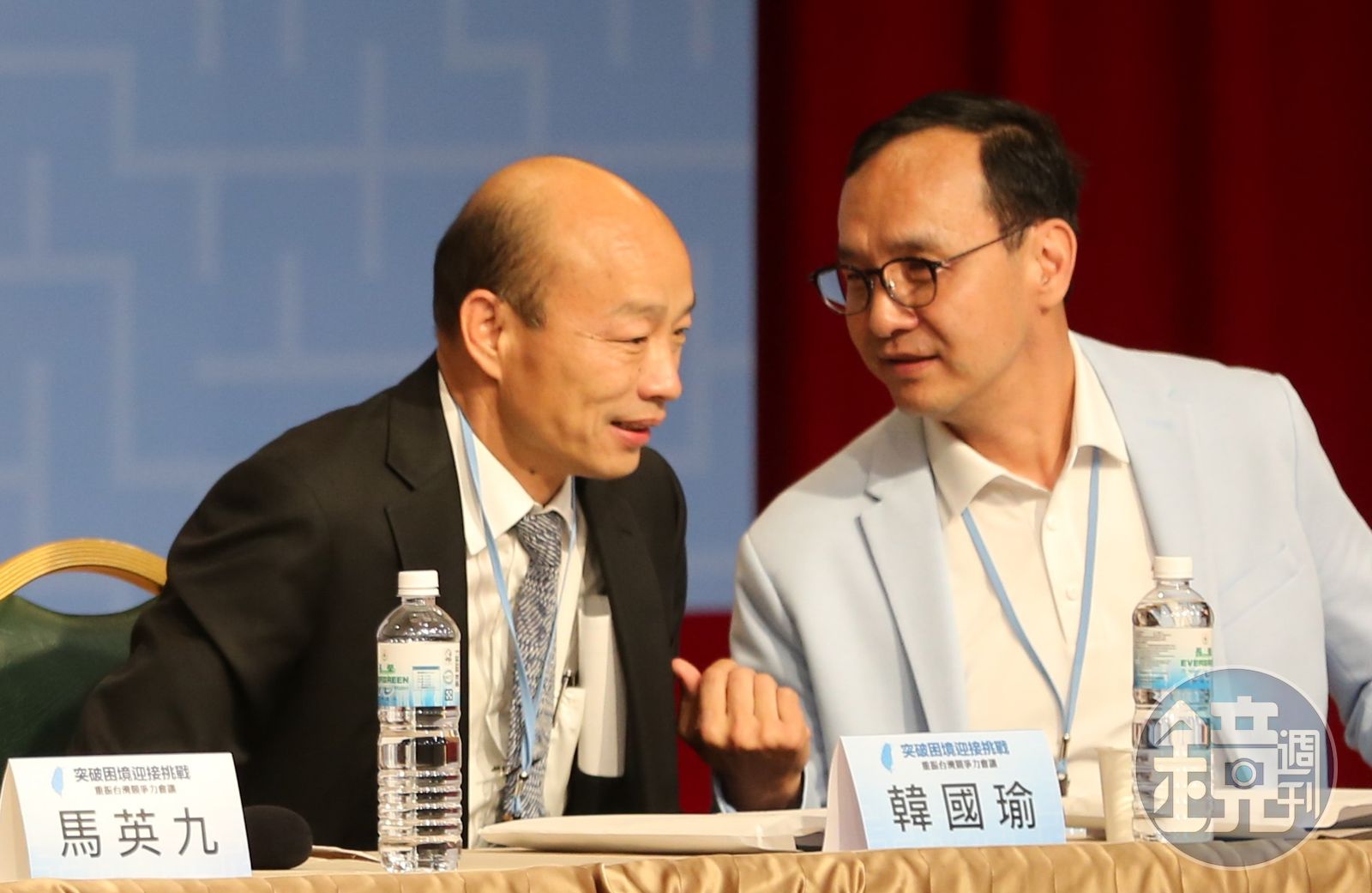 朱立倫(右)強調「韓朱配」是不存在的事情,國民黨唯一的母雞是韓國瑜(左)。(本刊資料照)發布時間:2019.09.24 16:27 臺北時間