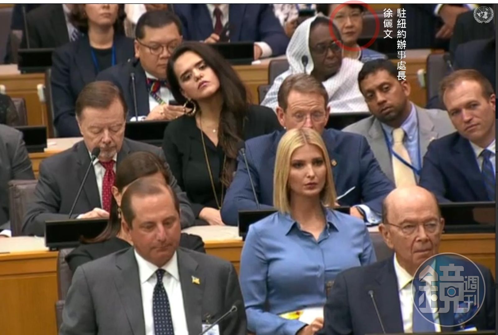 外交部隨後也在推特發文附上徐儷文出席會議的照片,並表示台灣作為一個自由開放的國家,也一直致力促進宗教自由。巧的是,照片中,徐儷文就坐在美方官員的後兩排,恰好與川普的長女伊凡卡同框。