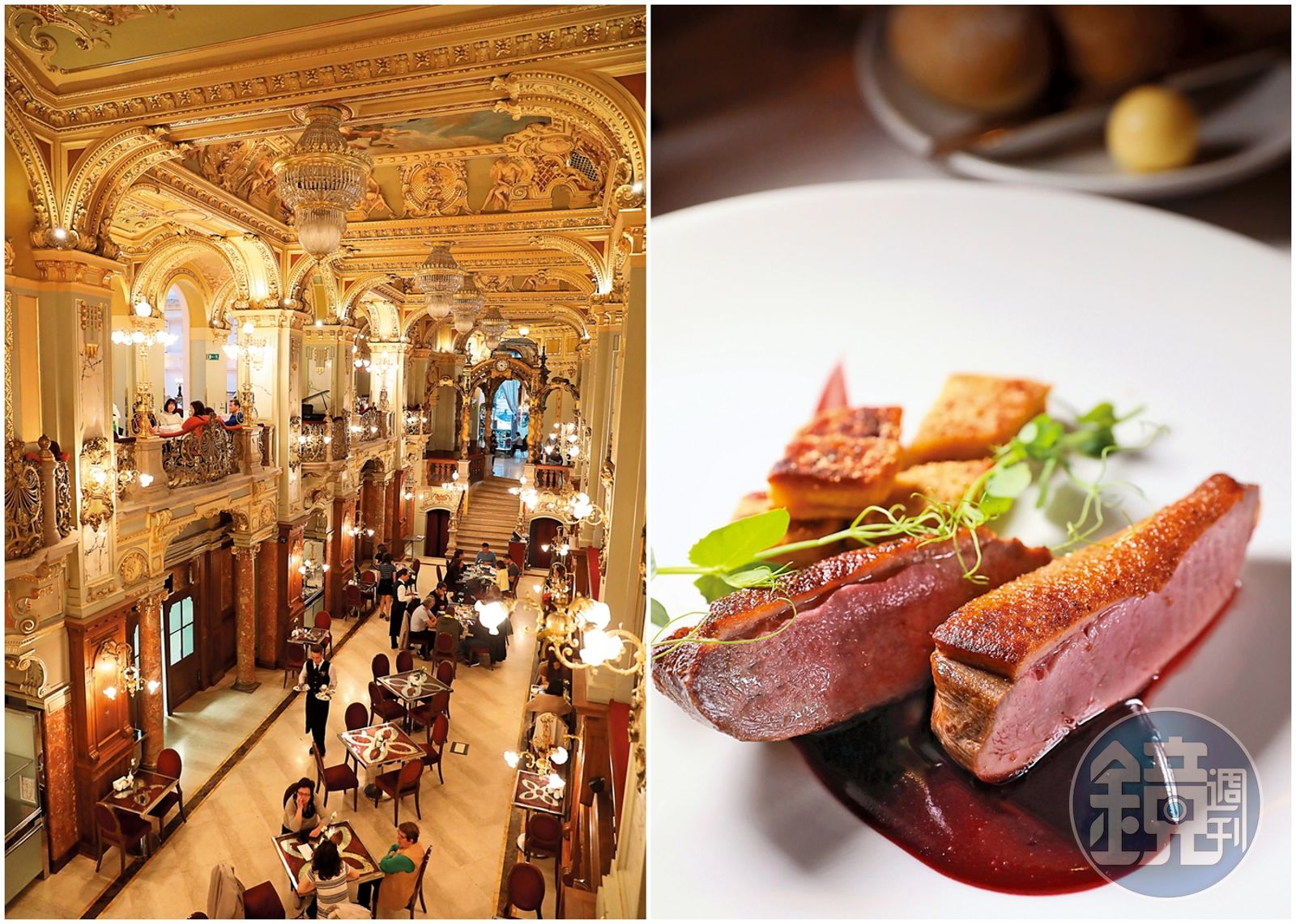 推開大門,細緻的浮雕、壁刻與氣派的水晶吊燈,大量的金色裝飾,展現當時奧匈帝國的美學品味與雄厚國力,許多遊客在等待服務生上菜時,已按耐不住捕捉各種角度的自拍照片。