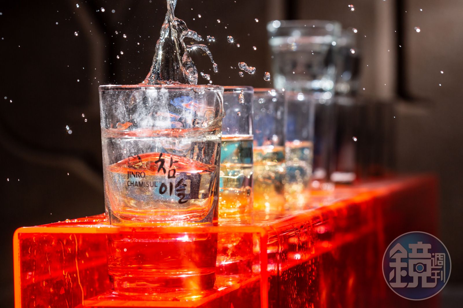 一整排裝滿真露的透明小盞隨著啤酒杯上桌,在燈光下散發著19禁(韓國19歲成年)的危險魅力,這是酒局上不可或缺的「燒啤」。隨著小杯投入大杯,咕咚一聲,濺起金黃的酒花,有如派對的開關,宣布今夜的撒潑狂歡正式開始。