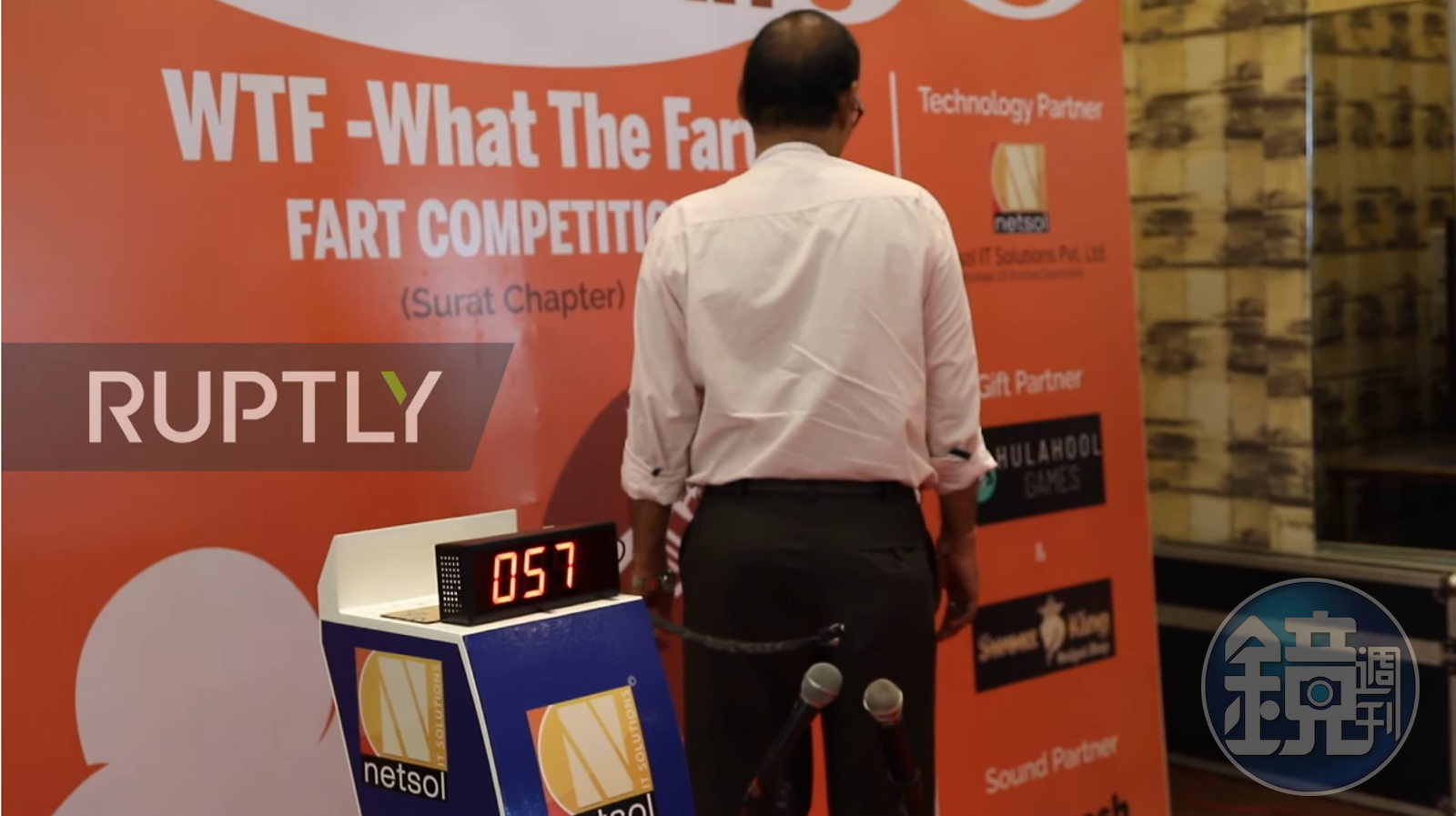 綜合外媒報導,22日舉辦的「放屁大賽」分為3大評測項目,看誰的屁「最久」「最大聲」「最具音樂性」,每位參賽者有60秒能醞釀釋放,主辦單位特別準備了2隻麥克風,祭出冠軍可奪得1.5萬盧比(約新台幣6500元)獎金,還請來喜劇演員及當地醫師評選,選出3位優勝者,活動主旨就是希望民眾輕鬆看待放屁這件事。