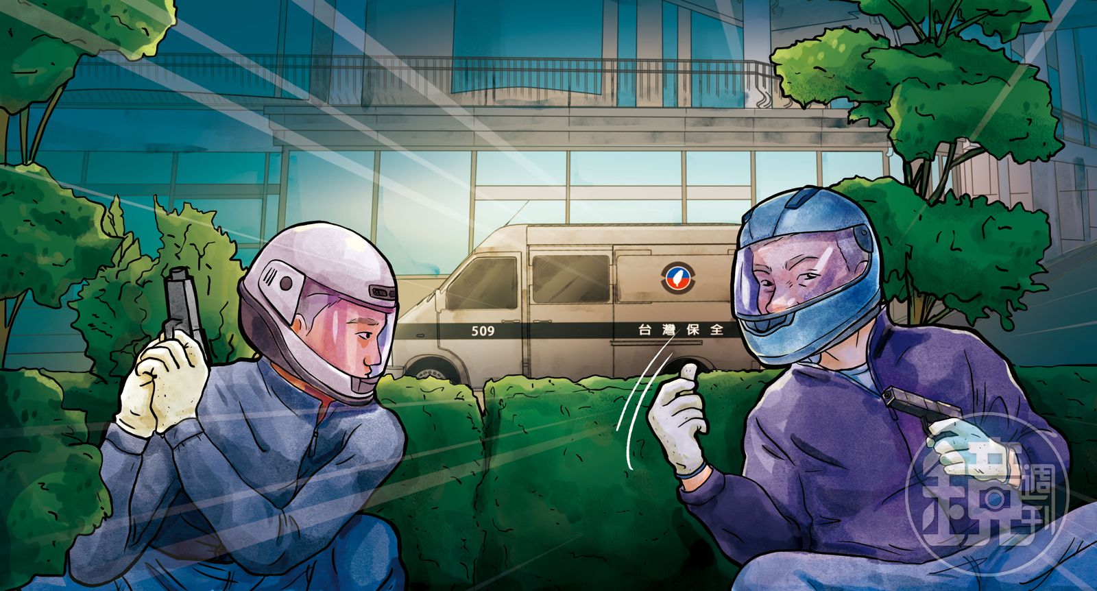 得知犯罪計畫後,警方商請保全公司派出具防彈功能的運鈔車當餌進行誘捕。(翻攝東森新聞)「案發前大概二個禮拜,我們發現犯嫌已經在討論探勘犯罪地點,跟監二、三次後,得知他們都是去龜山附近的台北高爾夫球場,甚至還在現場模擬犯案過程,這才確定他們是要搶球場的運鈔車。」呂芳逸表示。