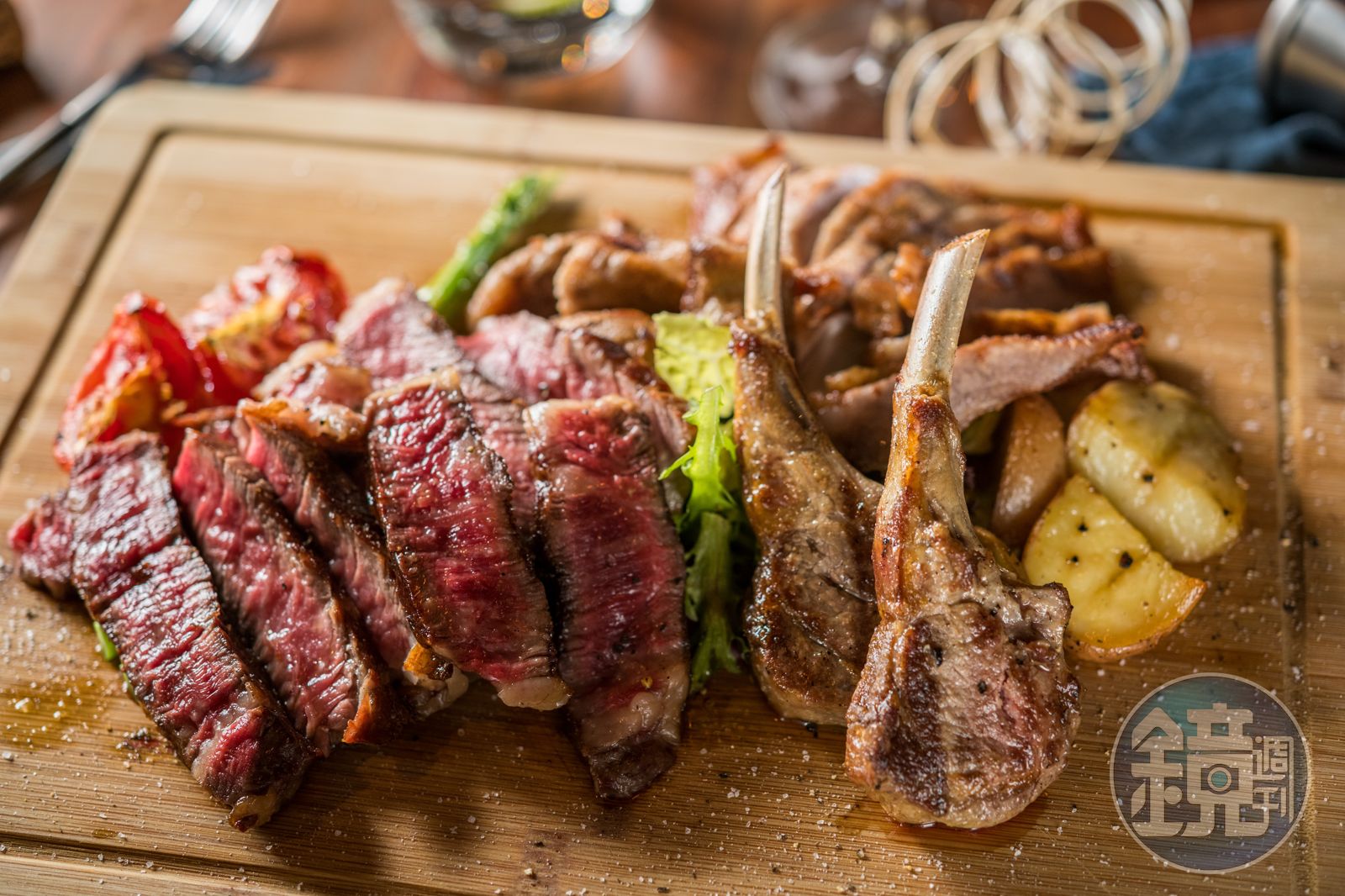 原味炭烤只有一個原則,「不要過熟。」一份烤肉拼盤就包含多種烹調時間,雞、豬先下,最後才是牛,要烤到剛好皮香肉嫩,考驗師父的眼明手快。所謂的義式柴燒炭烤,調味非常簡單,「我們沒什麼醬汁,就是鹽、胡椒、橄欖油和迷迭香,加上龍眼柴燒釋出的果香味。」