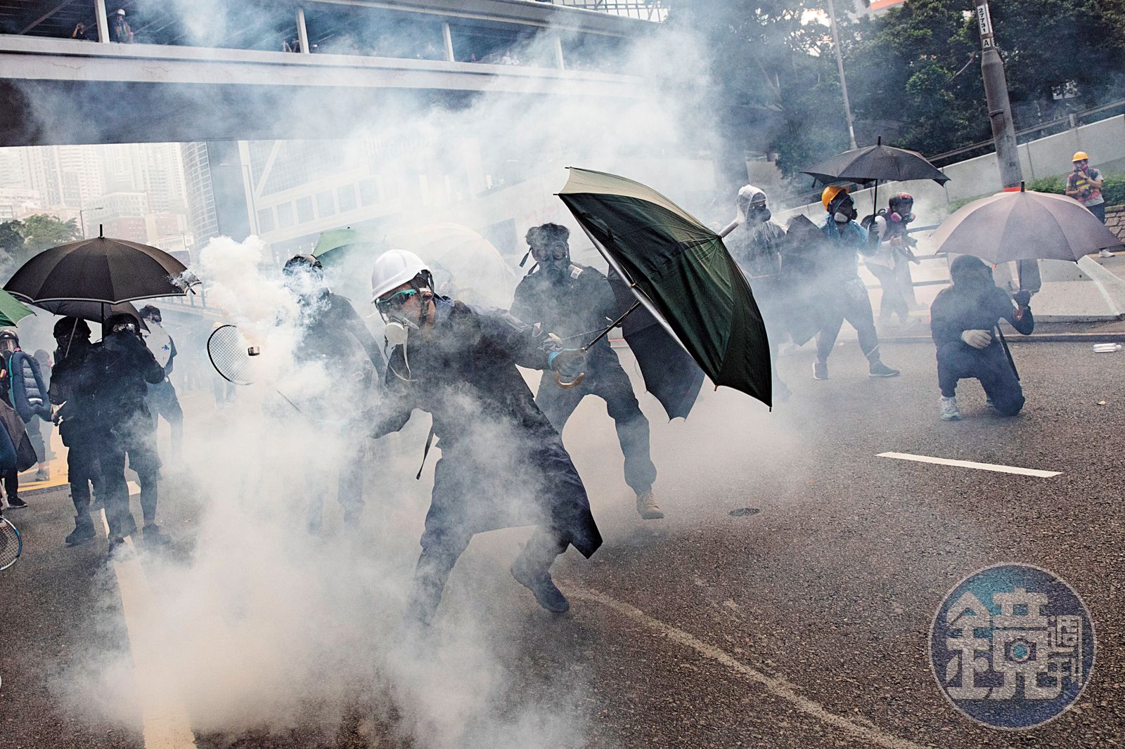 這一頭,黃之鋒等人在添馬公園闡揚和平理性非暴力,「這場運動已無退路,我們將全力投入到抗爭中。」黃之鋒說:「參與運動的不只是年輕人,各階層都參與進來了,香港人權法也將正式實施,大家正在共同反擊。」那一側,勇武派在政府總部與警察對峙著,以前犯過的錯誤不要再犯了,二派人馬不割席、不篤灰,兄弟上山各自努力。