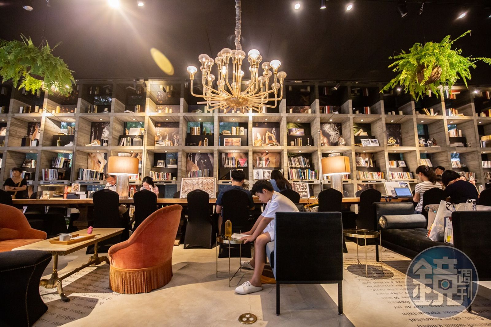 一張長條型的書桌,小型的沙發區,在各個角落擺放著單獨的座椅,間隔算是寬敞,跟圖書館的明亮相反,樂樂書屋的燈光呈現略為昏黃的質感,若仔細觀察,每個座位都有專屬的燈光照明,完全不影響閱讀的視線,設計的精緻展現在細節上,即使是平日,也有不少人專程為看書而來。