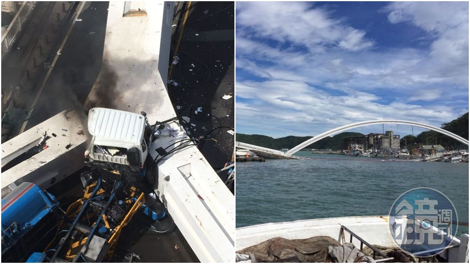 南方澳跨海大橋於1998年興建完成並通車,長140公尺、寬15公尺,目前橋齡21年、造價2.5億元,此橋是國內唯一單鋼拱橋,也是亞洲第一座雙叉式單拱橋。上午跨海大橋突然斷裂,當時行駛中的油灌車當場掉落,車頭撞上橋墩起火,3艘漁船被壓到,也由於台電的高壓電纜附掛於橋下方,橋斷裂導致電線設備壓損,經過台電處理後一小時後全部復電。