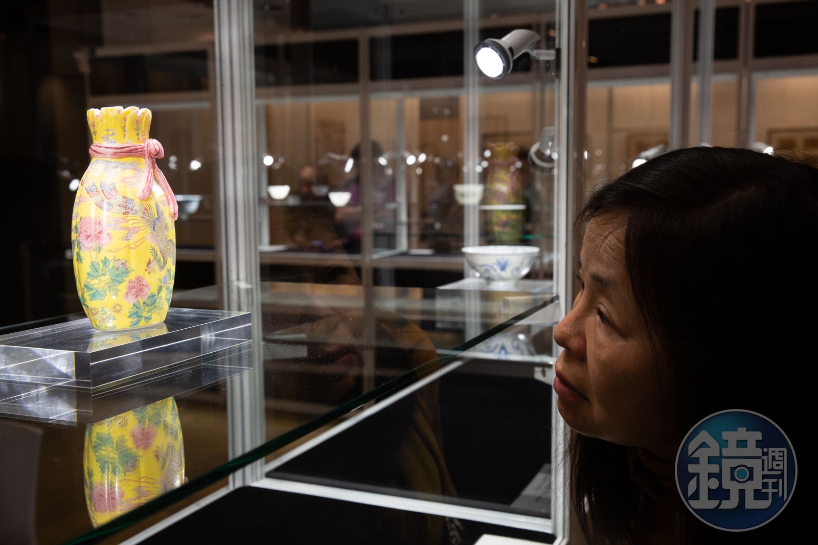 「以現存御製玻璃(料胎)畫琺瑯器而言,毫無疑問這一件狀況最佳。無論在台北或北京故宮,沒有一件的尺寸及複雜程度,能與今次這件比擬。」2週前,在台北華南銀行國際會議中心展出超過300件拍賣珍品,吸引上千位台灣買家的香港蘇富比秋拍預展上,香港蘇富比亞洲區主席仇國仕手上拿著「清乾隆料胎黃地畫琺瑯鳳舞牡丹包袱瓶」,向買家們介紹這件收藏界引頸以待的拍品,為今年秋季拍賣會揭開序幕。