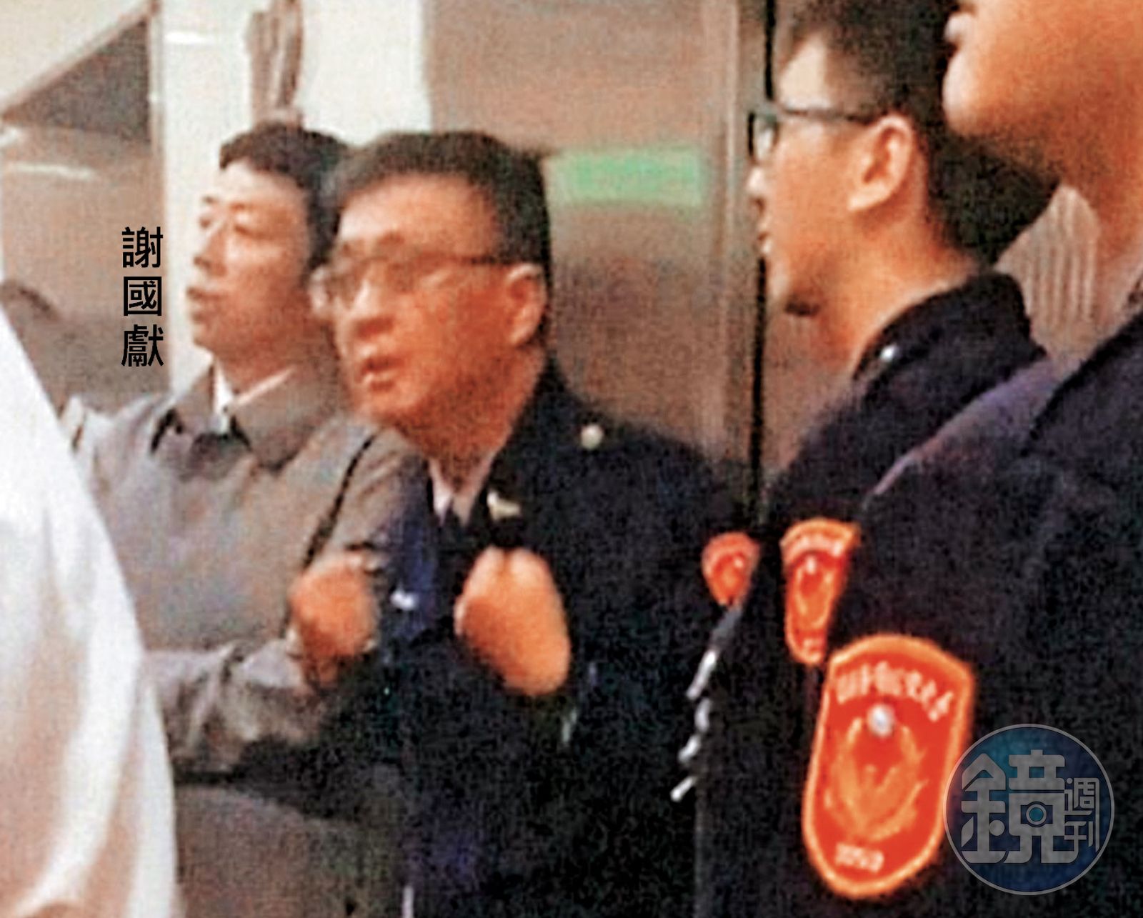 老三張國政的連襟謝國獻曾因恐嚇討債遭判有罪,去年想強闖張榮發基金會董事會,遭長榮保全員攔阻。(讀者提供)本刊調查,目前台北地檢署與台北市刑大針對長榮集團遭暴力介入案偵辦後,發現可能有黑道幫派介入長榮集團經營權之爭,今年7月11日,以涉組織犯罪及妨害自由等罪嫌,拘提的張榮發三子張國政的連襟謝國獻,並已傳喚相關被害人到案。