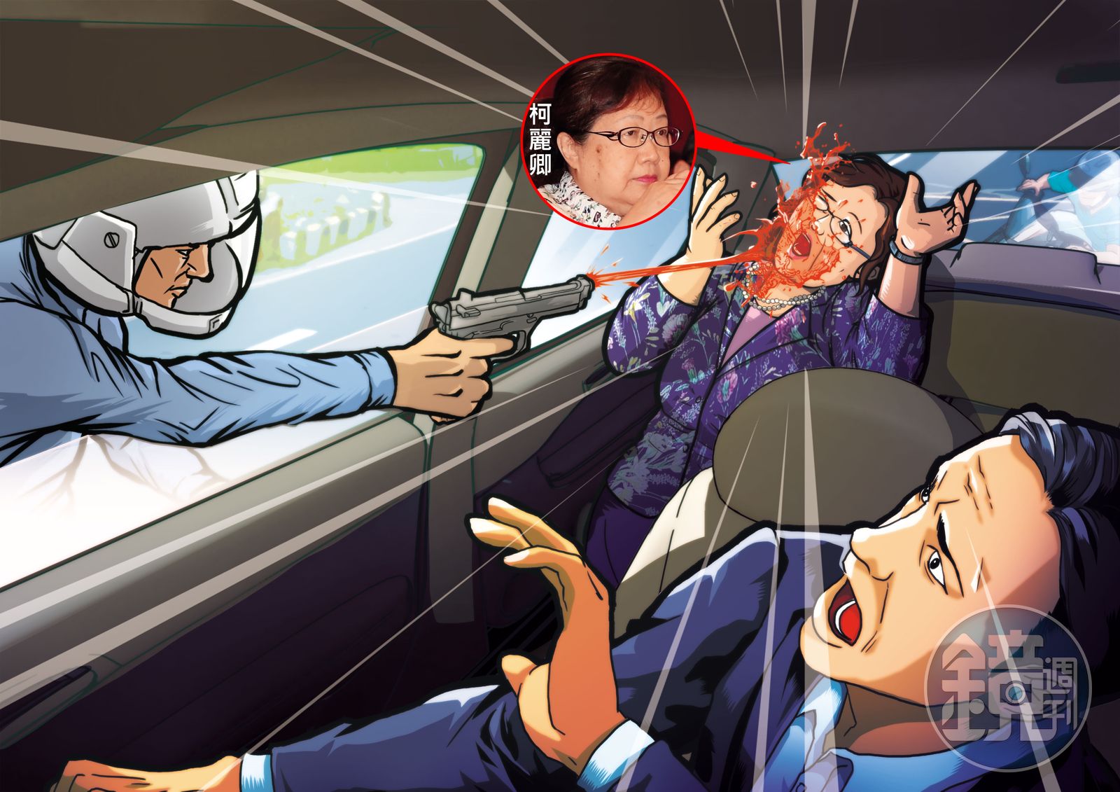 這時機車後座的欒忠業上前敲車窗玻璃叫罵,柳姓駕駛才剛開車窗,欒男就拿出槍枝朝後座的柯麗卿射擊,來不及閃躲的柯麗卿,臉上立即出現灼熱感,司機見情況不對,隨即加足馬力駛離,並將柯麗卿載回長榮集團總部。