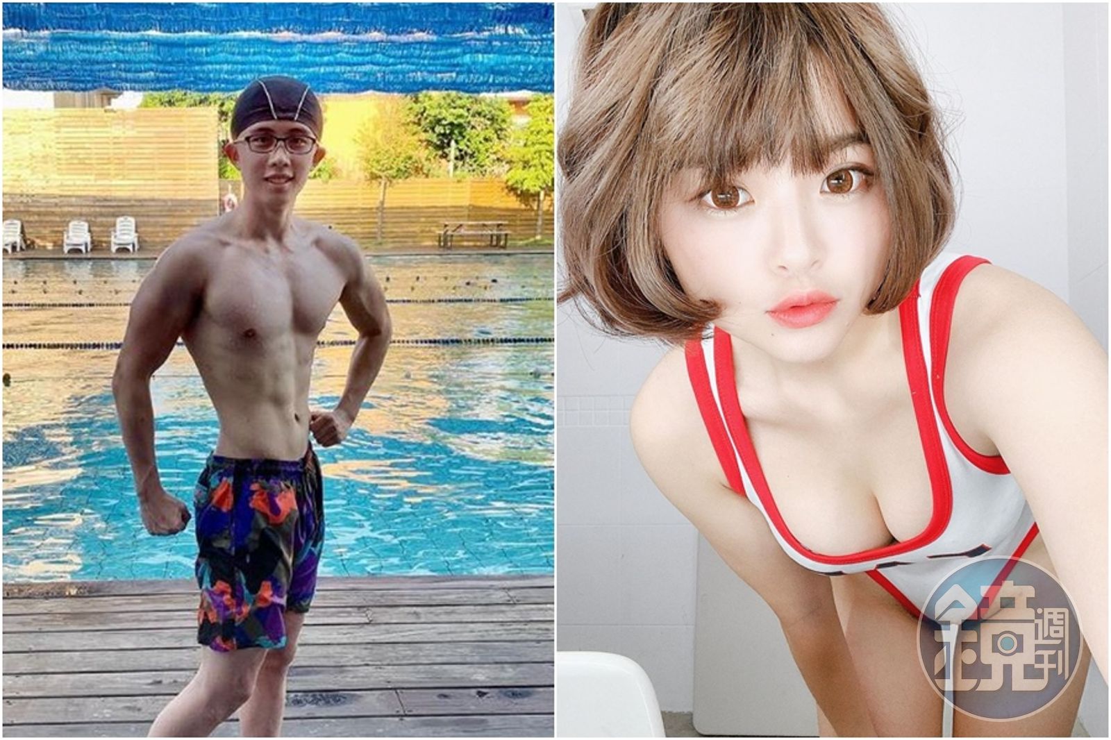孫安佐(左圖)常常秀出精壯肌肉,還被爆出和網紅米砂(右圖)有感情糾紛。(翻攝自孫安佐、米砂IG)發布時間:2019.10.03 16:25 臺北時間