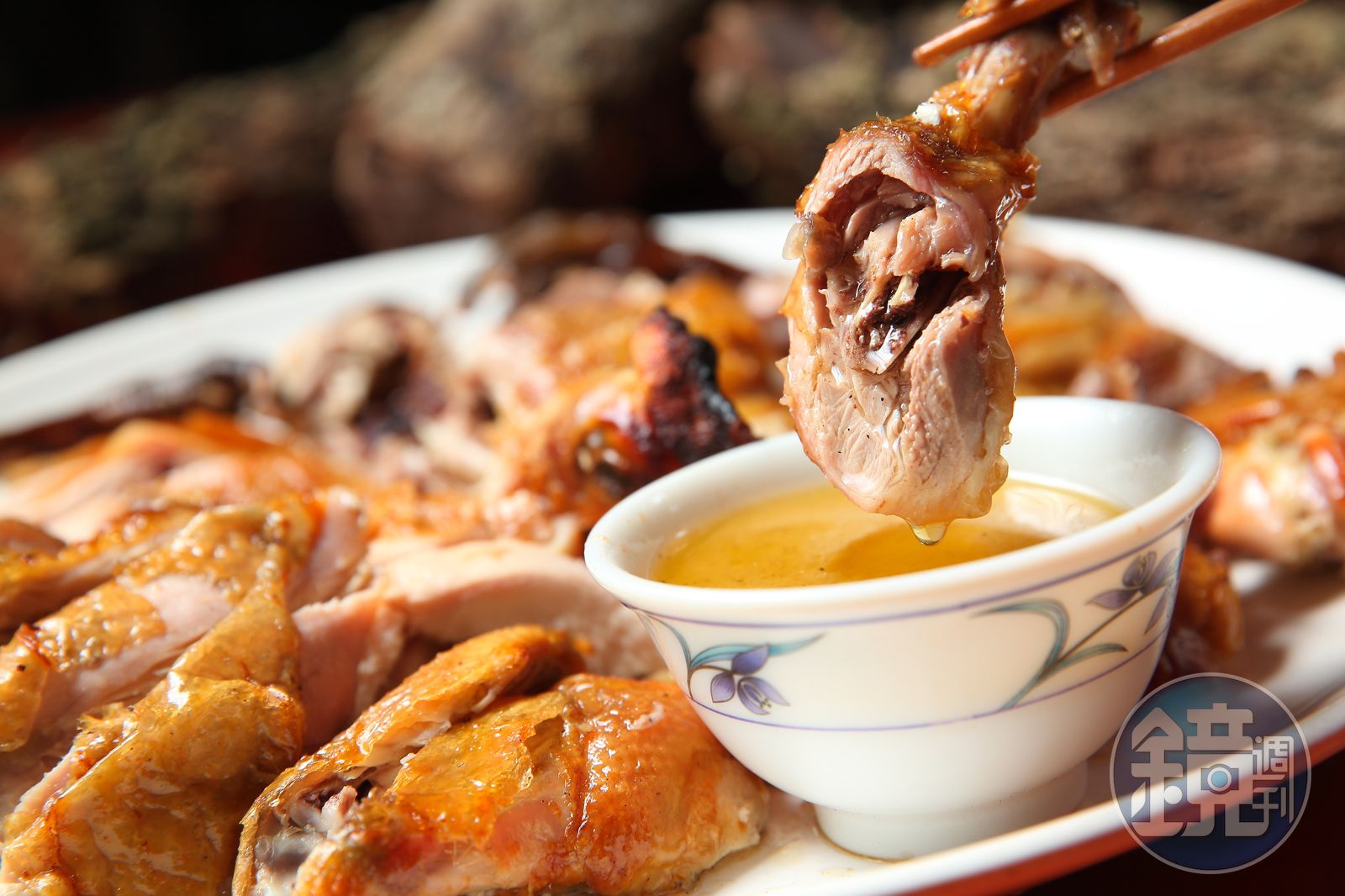 69歲的父親林東村雖已交棒,仍在旁緊盯火候,瞄一眼木柴量就知道雞烤得好不好,「火不能超過桶子的高度,最好在桶身一半,火太高馬上燒焦。」創業靈感來自1994年他在台南關子嶺吃到的桶仔雞,「以前中部沒有桶仔雞,我們8個人在關子嶺吃了6隻,那邊是用沙拉油桶,一次罩1隻雞,烤一次桶子就丟了,我覺得好吃可以賣,就改成白鐵圓桶,比較厚和大,更耐用,圓形的受熱均勻,一次可串2隻雞。」