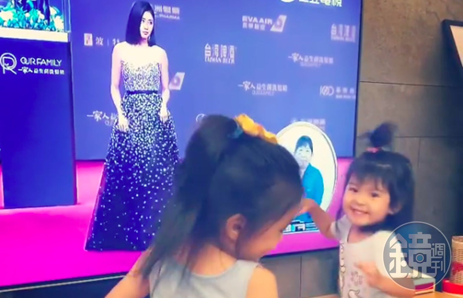 賈靜雯走紅毯時,兩個女兒在電視前興奮扭動,這麼強度的支持果然助攻成功。(翻攝自修杰楷IG)發布時間:2019.10.06 13:37 臺北時間