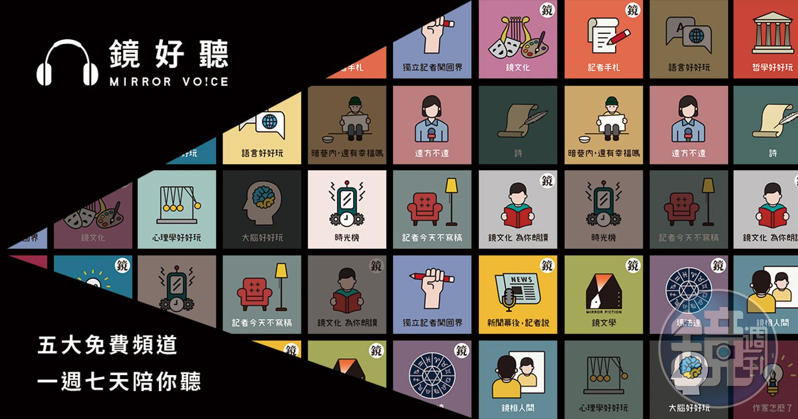 更多精彩可期的節目也即將推出,星座大師瑪法達親自錄製聲音節目〈家有星座毛小孩〉,鮮少在公開場合現身的瑪法達,將首度從星座與寵物的觀點,陪著聽眾談星談心。〈READr資料新聞解密〉透過數據解析受訪者無法提供的資料;〈娛樂私下說〉由總監帶你搜祕舞台下的演藝圈生活,還有〈鏡食旅看世界〉、〈鏡食旅玩臺灣〉、〈鏡食旅吃美食〉和〈聽好書〉等獨家內容搶先聽,一週七天陪你聽遊新鮮事!