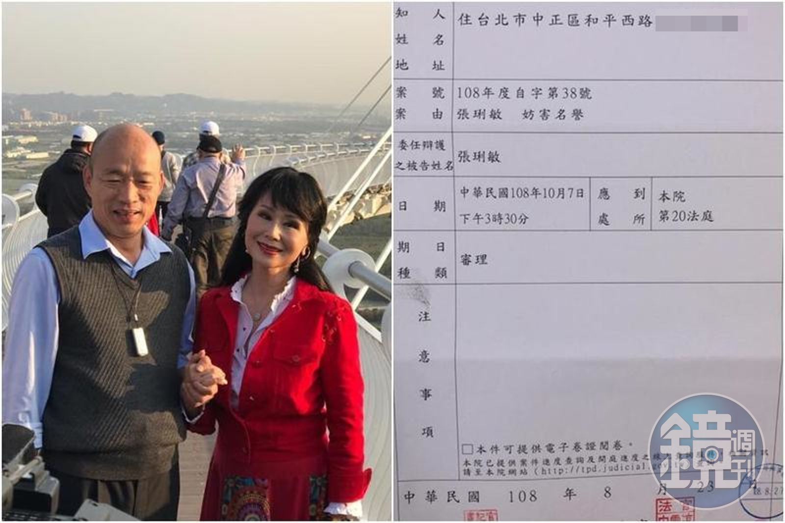 資深藝人張琍敏是韓粉,今年4月還受邀代言高雄市觀光,當時她在臉書發文,稱「高雄有3000億的重大弊案,陳菊蛇鼠一窩」,遭到陳菊提告加重誹謗、附帶民事求償300萬元,後來張琍敏雖刪文道歉仍未獲撤告,今(7日)下午3點半將首度出庭。