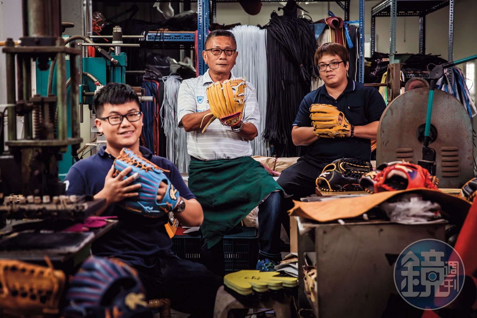 蘇文得的長子蘇振愷,等於是在棒球工廠長大。他出生時,蘇文得做的是量很大的廉價手套,「那時候手套做完一個就丟到籃子裡一個,速度很快,籃子很大。我哥沒有嬰兒車睡,都隨便放在一個籃子裡。」負責技術面的蘇振愷話較少,多由小他10歲的老么蘇國維對外發言。