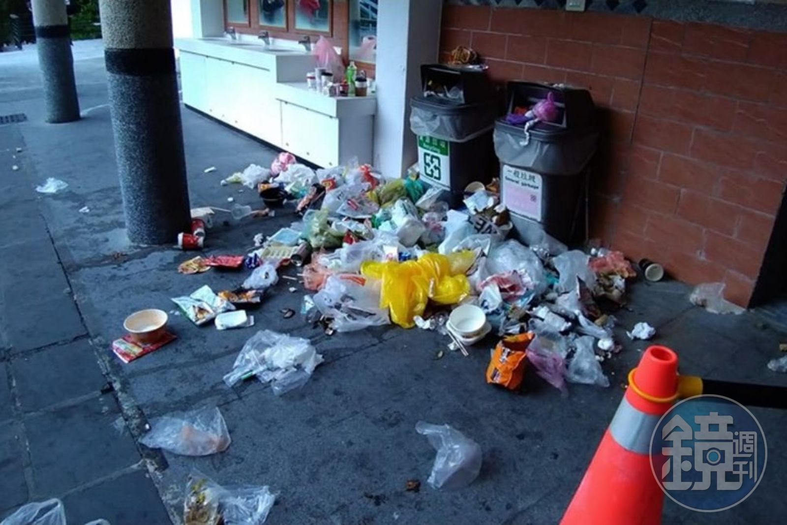 有網友11日在臉書社團「爆怨公社」分享在太魯閣國家公園看到的景象,直呼「嚇死寶寶了」,照片可見該處雖已擺放兩個垃圾桶,但已超乎容納空間,空碗、塑膠袋、瓶罐、雨衣等廢棄物被遊客隨意丟擲在垃圾桶附近成「小山」,甚至是洗手台上也被占用,現場宛如無人管理的垃圾堆,完全破壞了清幽的太魯閣美景。