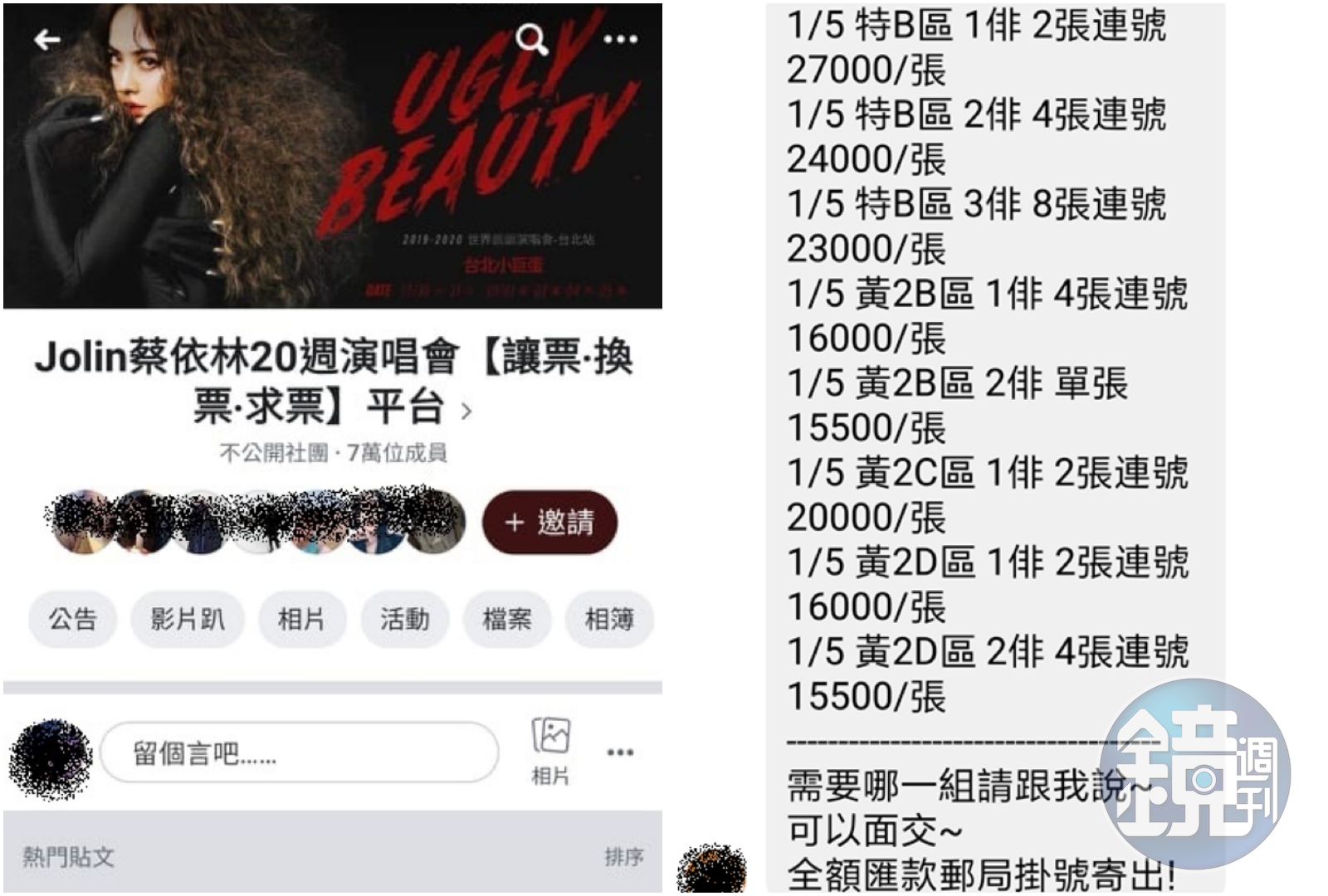 本刊調查,這些黃牛業者見演唱會一票難求,針對想要票的民眾,直接大剌剌的列出蔡依林演唱會的所有場次的價錢、時間、座位等,整理的條條有序,宛如另類的地下售票系統,讓網友直呼「完全無視法律。」