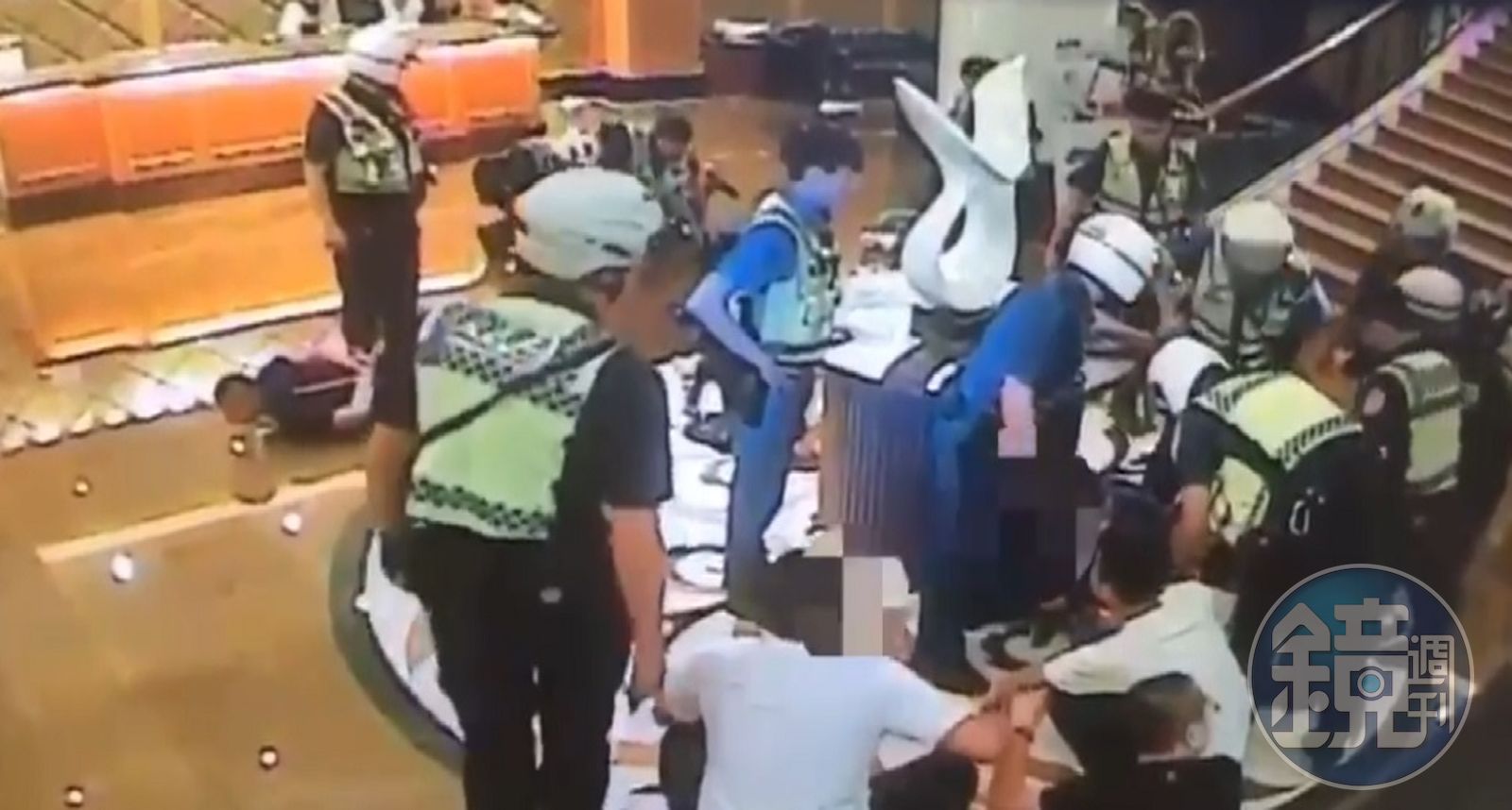板橋錢櫃KTV凌晨發生兩派酒客打群架事故,警快打部隊到場很快將鬧事14人壓制帶回。(翻攝畫面)發布時間:2019.10.14 17:37 臺北時間