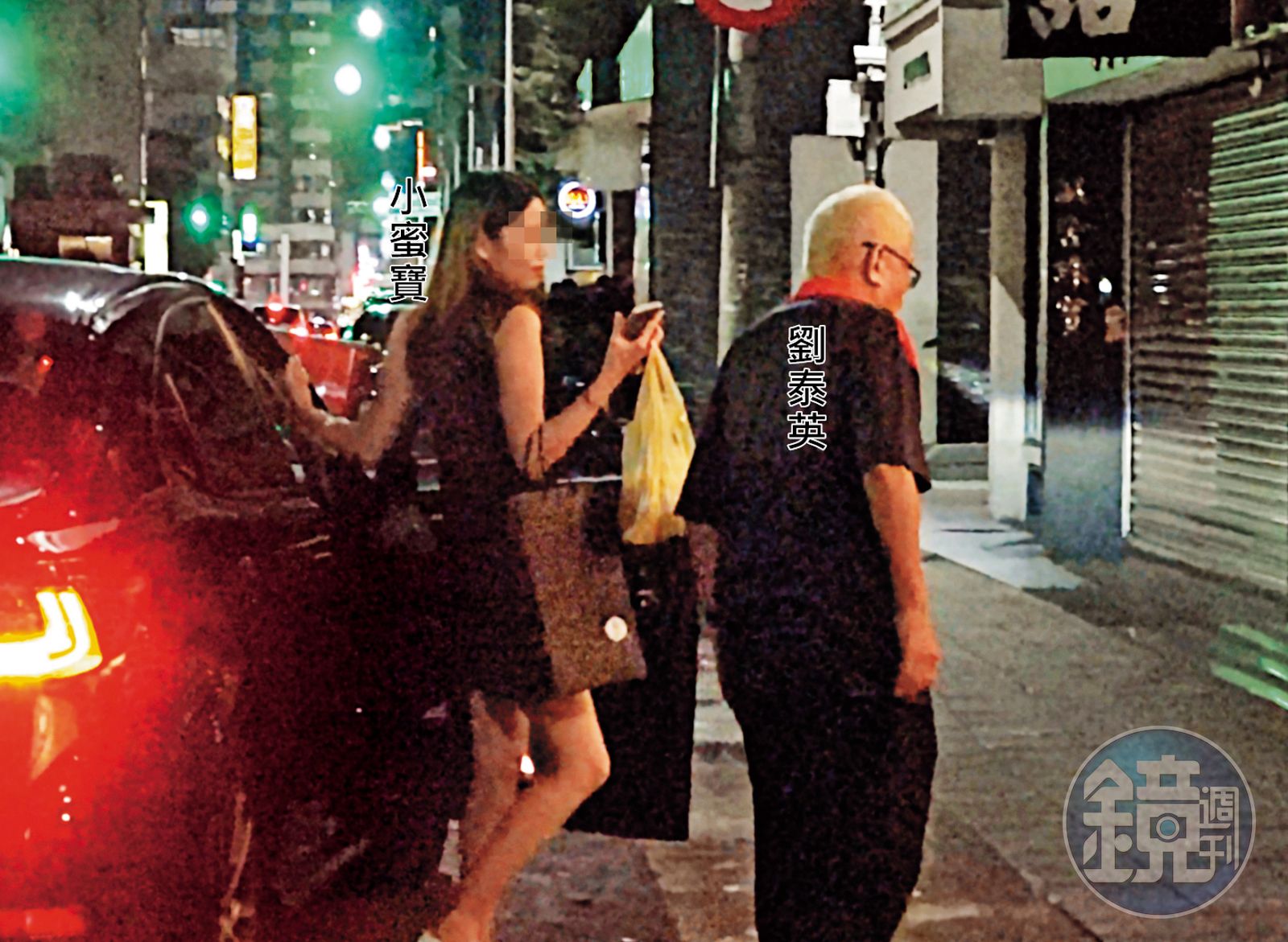 10/05 20 : 54 10月5日劉泰英與抱著小孩的新女友拉拉同框,吃完頂級火鍋「大安9號」後一同離去。來自中國北京的拉拉,年約40歲。過了不到1分鐘,劉泰英下樓,坐上LEXUS座車,這時長腿正妹已消失在鏡頭外;不久,劉泰英抵達「悅上海」餐廳,與長腿正妹會合後,與友人一起共進晚餐,享用美味的上海料理。