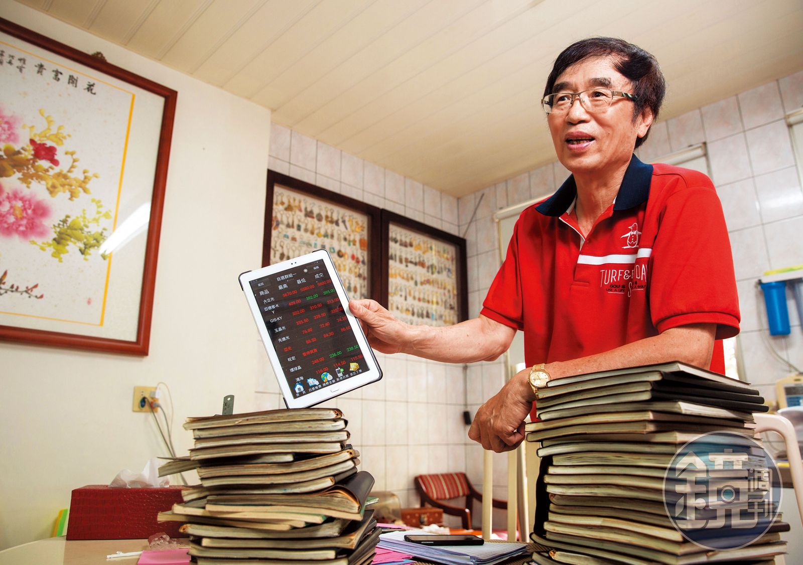 剛開始,他每天抄寫重要持股的股價,包括開盤、盤中最高、盤中最低和收盤價、成交量等,「現在內行了,只抄收盤價。」