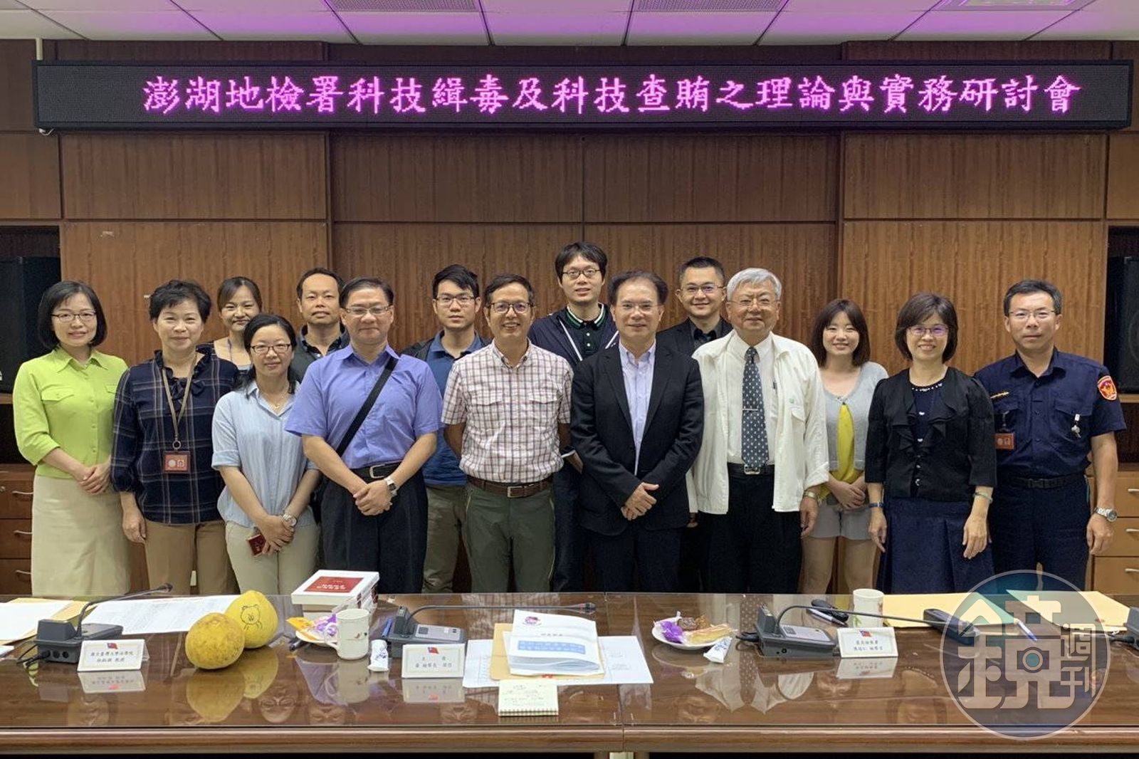 澎湖地檢署檢察長黃謀信為精進離島地區的檢、警、調、憲、海巡、關務等六大司法警察機關運用數位採證設備能力,以強化科技緝毒及科技查賄技巧,在高檢署檢察長王添盛的大力支持之下,從昨(17日)到今(18日)二天辦理這場離島罕見地科技研討會。