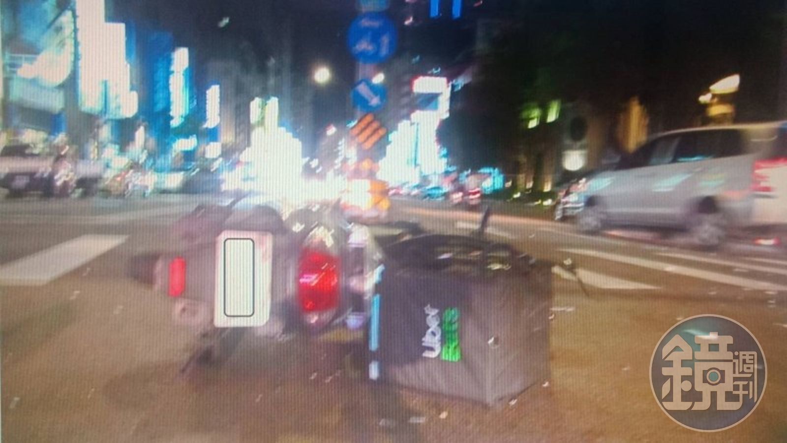 Uber_Eats外送員連人帶車倒地受傷。(民眾提供)發布時間:2019.10.18 16:34 臺北時間