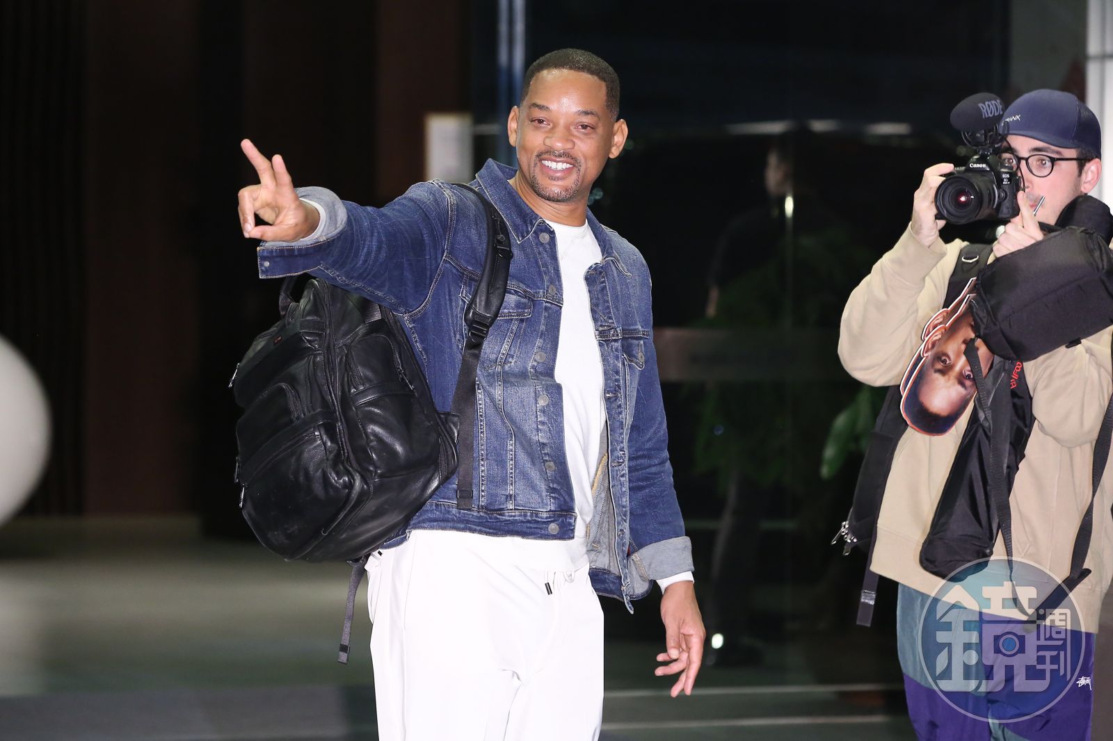 一行人約在18日晚間10點,步出松山機場的貴賓服務中心。率先跟媒體見面的威爾史密斯,先是比出勝利的「V」字手勢,讓攝影師拍個過癮。之後就把自己的單肩小背包放進座車,替前來接機的粉絲簽名與合照。