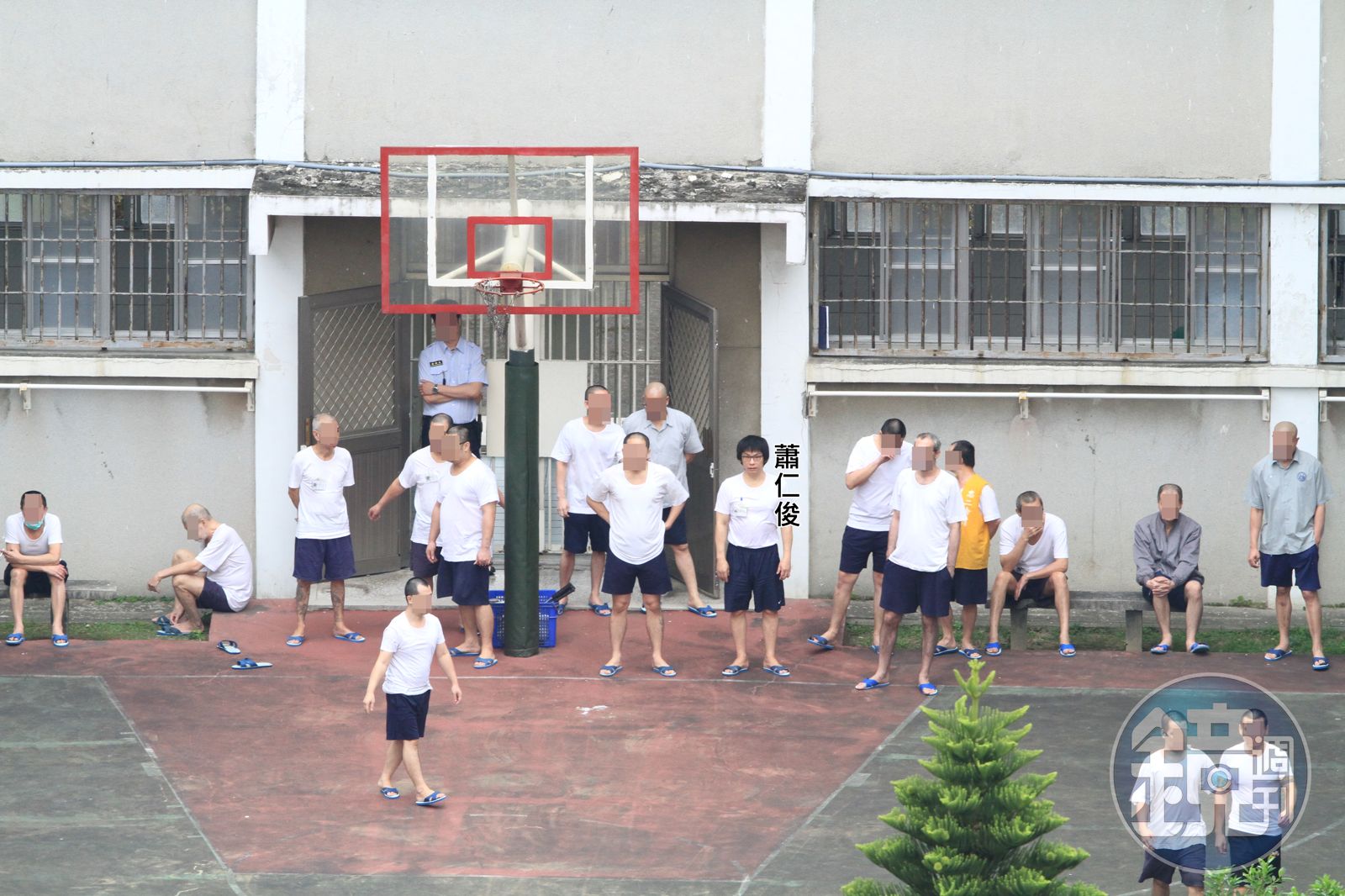而向來在獄中表現良好的蕭仁俊,疑似擔任班長角色,負責整理隊伍,其他收容人開始打籃球時,他沒有下場一起較勁,選擇和獄友在籃板下觀賽,偶爾再抖抖手、扭扭身體。