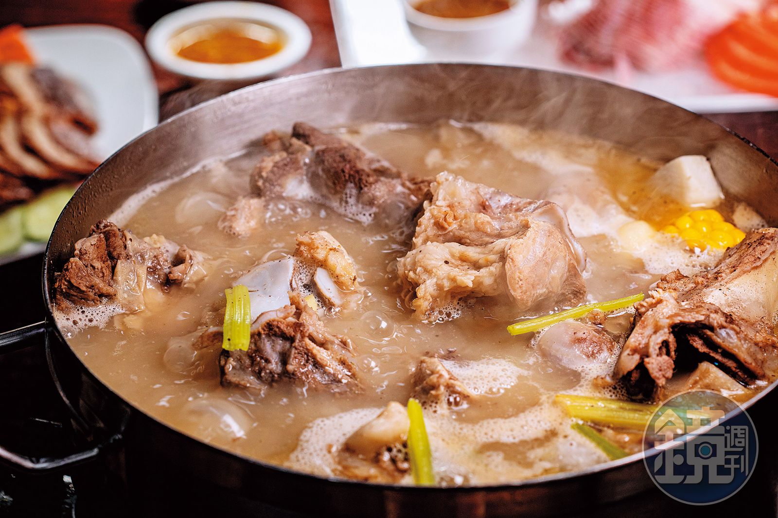 另一道必點的「翅湯雞腳骨堡」,並沒有真的使用魚翅,而是將過去煲魚翅雞湯的做法,用以熬煮這道豬骨雞湯,再加上店家特製的調味,淡雅的胡椒香,與雞湯和豬骨湯頭的香醇濃郁相得益彰,難怪上桌沒多久,湯鍋立刻見底。