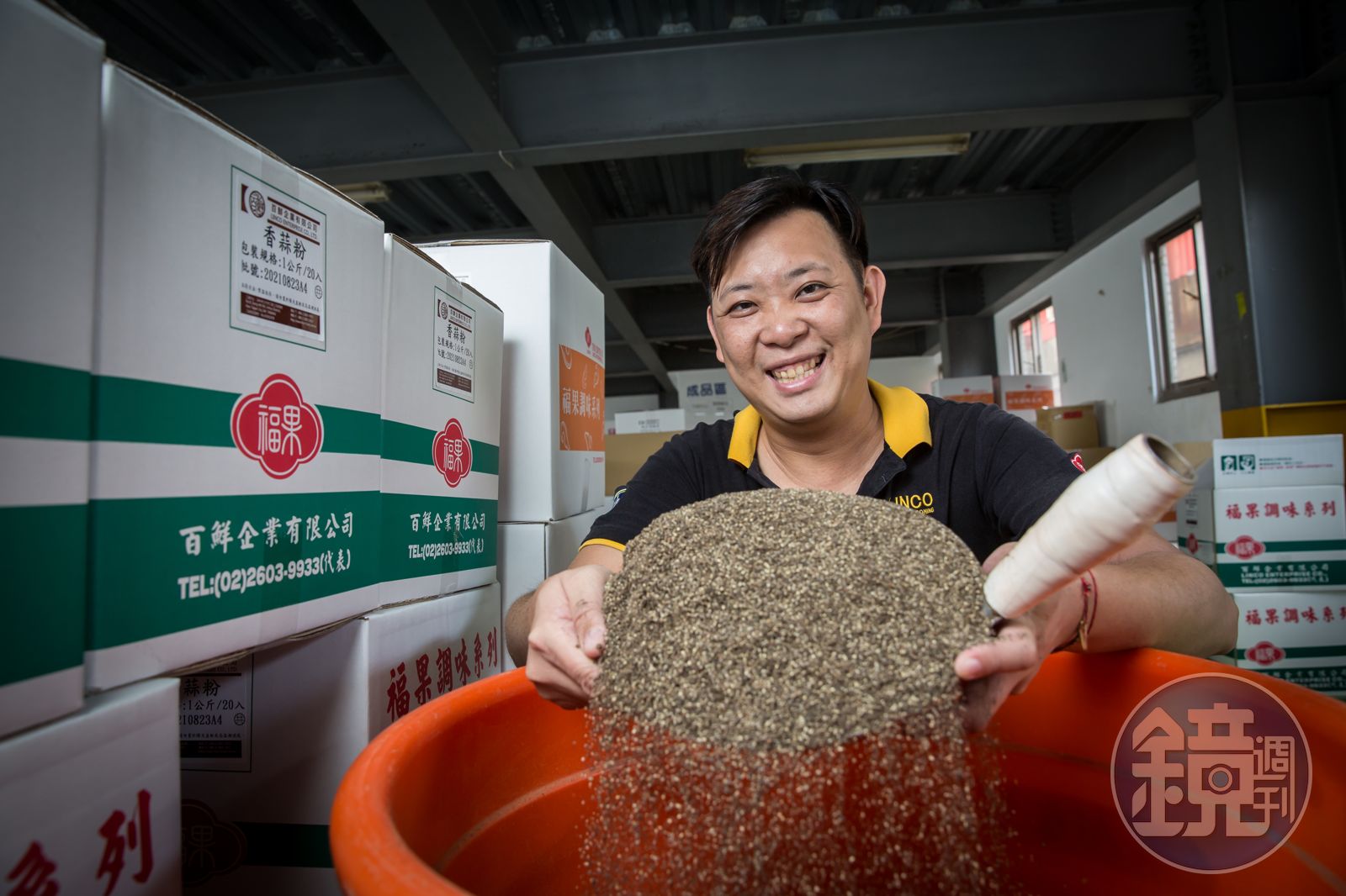 6年前,林裕閔因父親病逝接下家族事業,歷經食安風暴與業績停擺的考驗,他和弟弟、妹妹3人攜手,帶領以生產傳統香辛料起家的百鮮,轉型為粉類專家,陸續成為星球工坊、連鎖早餐與餐飲品牌的調味粉供應商。