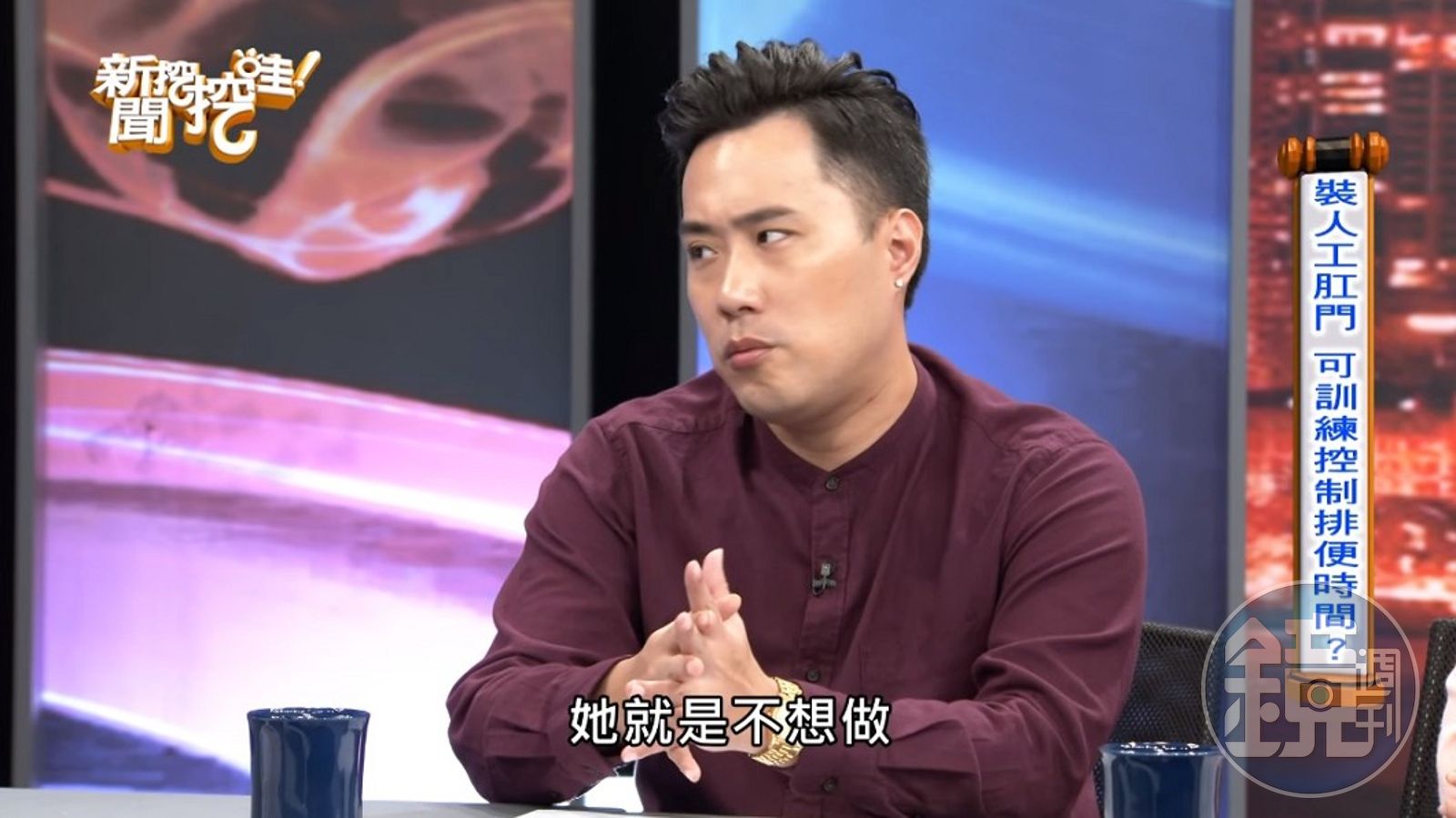 余祥銓上《新聞挖挖哇》時講到余苑綺抗癌路走得相當艱辛,「她都是蠻常說『我想上廁所、上大號』這樣。」節目來賓外科醫師陳樞鴻解釋,余苑綺一直想上廁所是因為壺腹已被切掉沒地方儲存,糞便一來就會忍不住,不過經過訓練能減低次數。主持人鄭弘儀提到很多直腸癌病患不想做人工肛門、覺得很難看,一旁的醫藥記者補充豬哥亮當時也是這樣,才會一直尋找偏方。