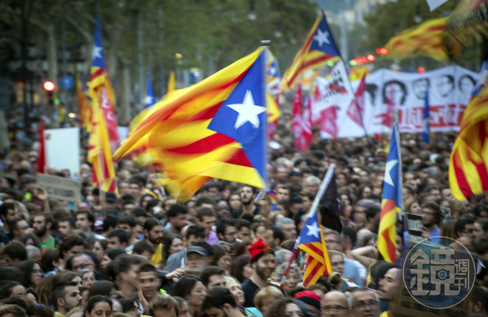在巴塞隆納的示威者,有時也用雷射筆對付警察,這是從香港街頭學來的招數。甚至,他們在街頭發送的傳單也是直接取自香港。