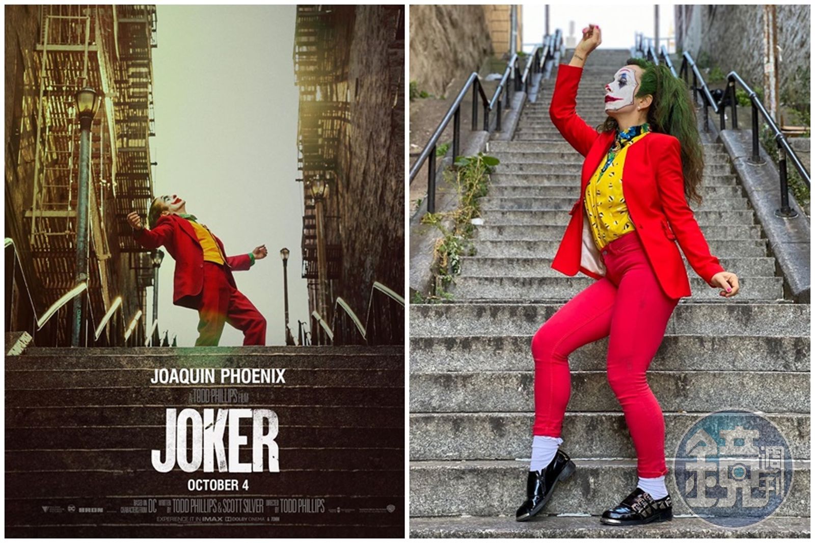 主角小丑大半輩子照顧罹患妄想症的母親,加上工作不如意,背負沉重的經濟壓力,讓他每每踏過這段回家必經的階梯時,總是駝著背、舉步維艱,背影相當沉重。直到最後他發現真相,決定擺開過去的束縛,他化好小丑妝,身穿紅色西裝,以搖曳舞姿一階階踏下這段漫長的階梯,象徵他蛻變成令人聞之喪膽的「小丑」的心境轉折處,透過好萊塢明星瓦昆菲尼克斯(Joaquin Phoenix)精湛的演出,也讓這處階梯一夕爆紅。