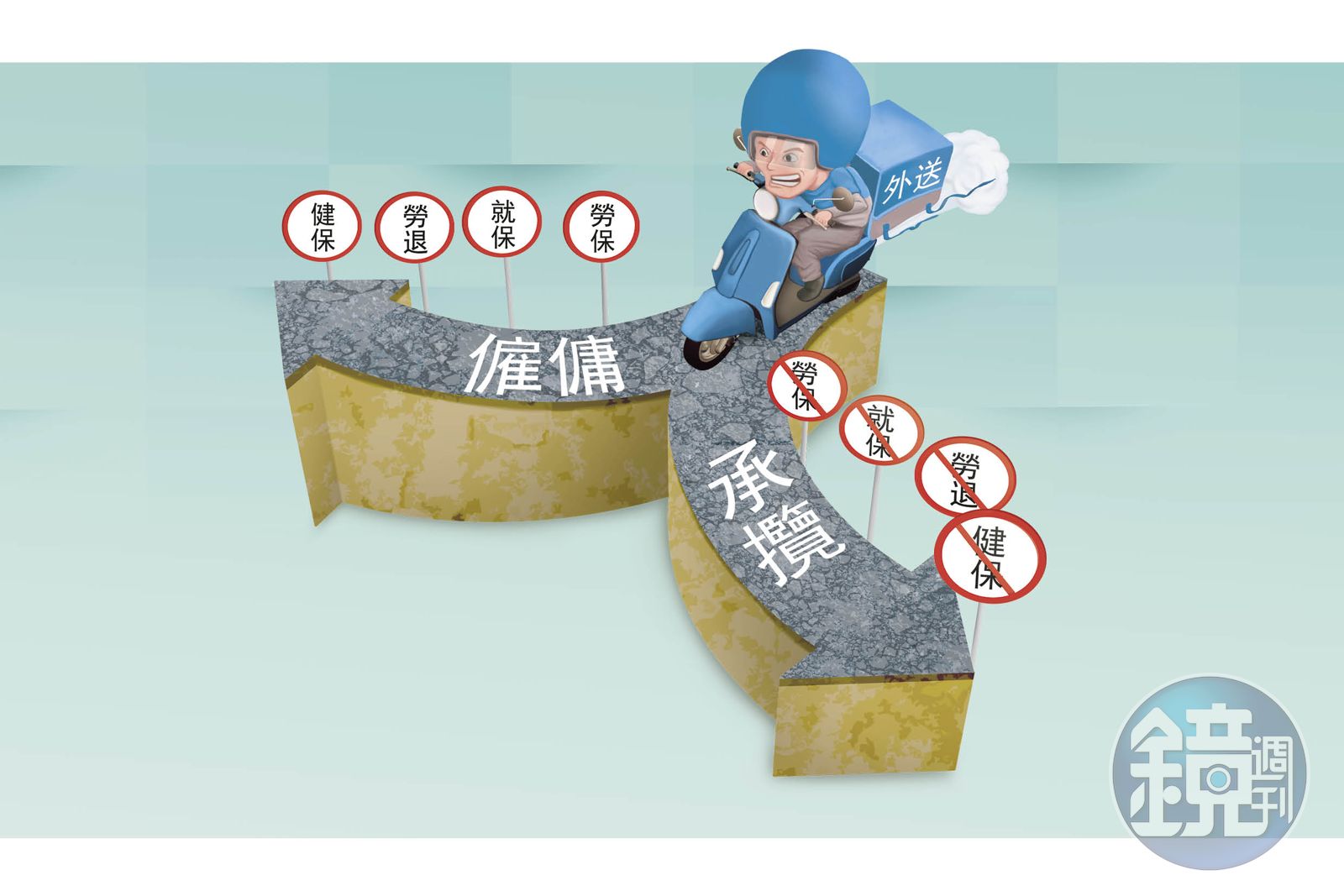 「我當然關心自身權益啊!如果公司願意幫我加入勞健保、提撥退休金,這樣福利較好!」但邱先生也擔心,一旦公司增加勞健保及6%勞退,以薪資4萬5800元投保級距為例,每月要為勞工多付8000多元成本,那這行月入10萬元的傳說是不是就會消失,也因此有外送員表示支持承攬關係。
